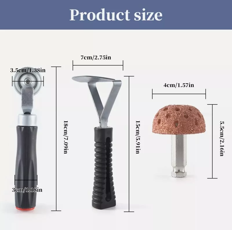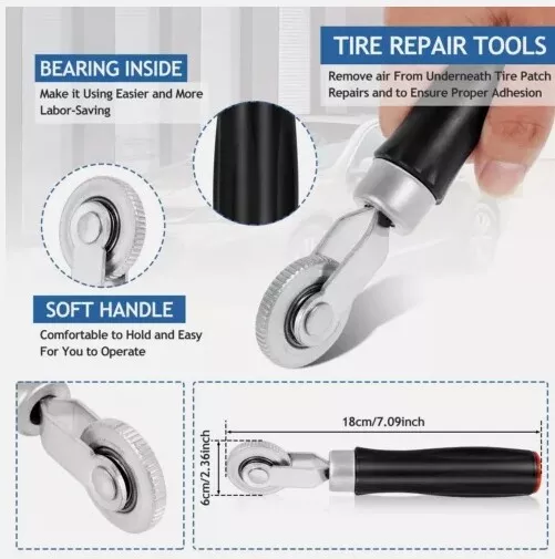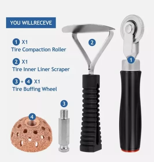 Product Features High Performance Feature: Our Tungsten Buffing Wheels are crafted with premium tungsten alloy, a wear-resistant material that ensures exceptional durability and extended service life. Superb Craftsmanship: Our Tire Buffing Wheels, Tungsten Steel Buffing Wheel, Low-speed hexagonal connecting rod, high-speed circular connecting rod, and Scraping Cutter are meticulously crafted to meet a range of needs. The versatile combined set offers practicality and wider applicability. Size Details: The tungsten buffing wheel has a diameter of approximately 42 mm/1.65 inches, while the tire patch roller measures about 7 mm/0.28 inches in thickness and 18 cm/7.09 inches in overall length. Easy Installation: Effortlessly install our tungsten steel polishing wheel to efficiently roughen tires, enabling fast grinding and saving you time and effort during tire repairs. The Tire Patch Rollers Wheels feature a combination of plastic and metal construction, designed to roll down inner tube and tire repair patches to eliminate trapped air. Widely Applicable: Our tire repair tools are designed for rolling tire and tube patches, ensuring secure adhesion during tire repairs. These tools find extensive applications in auto beauty maintenance and beyond. How To Use 1️⃣ Remove the tire and clean it. 2️⃣ Polish and grind the worn areas of the tires 3️⃣ Apply glue evenly and fill in the tire repair patch 4️⃣ Rolling with tire patch roller for adhesion and sealing Product Specification The Liner Scraper Material Metal + Rubber Size 15cm x 7.4cm/5.91" x 2.91" (Approx.) Tire Repair Buffing Wheel Material Tungsten steel Dimensions 1.65in/ 42mm in diameter, Hexagonal Rod Tire Patch Roller Material Plastic, alloy steel Dimensions 7mm/0.28 in(Thickness) and 18cm/7.09 in(length) Package Included 1 x Tire patch roller 1 x Liner Scraper 1 x Tire repair buffing wheel