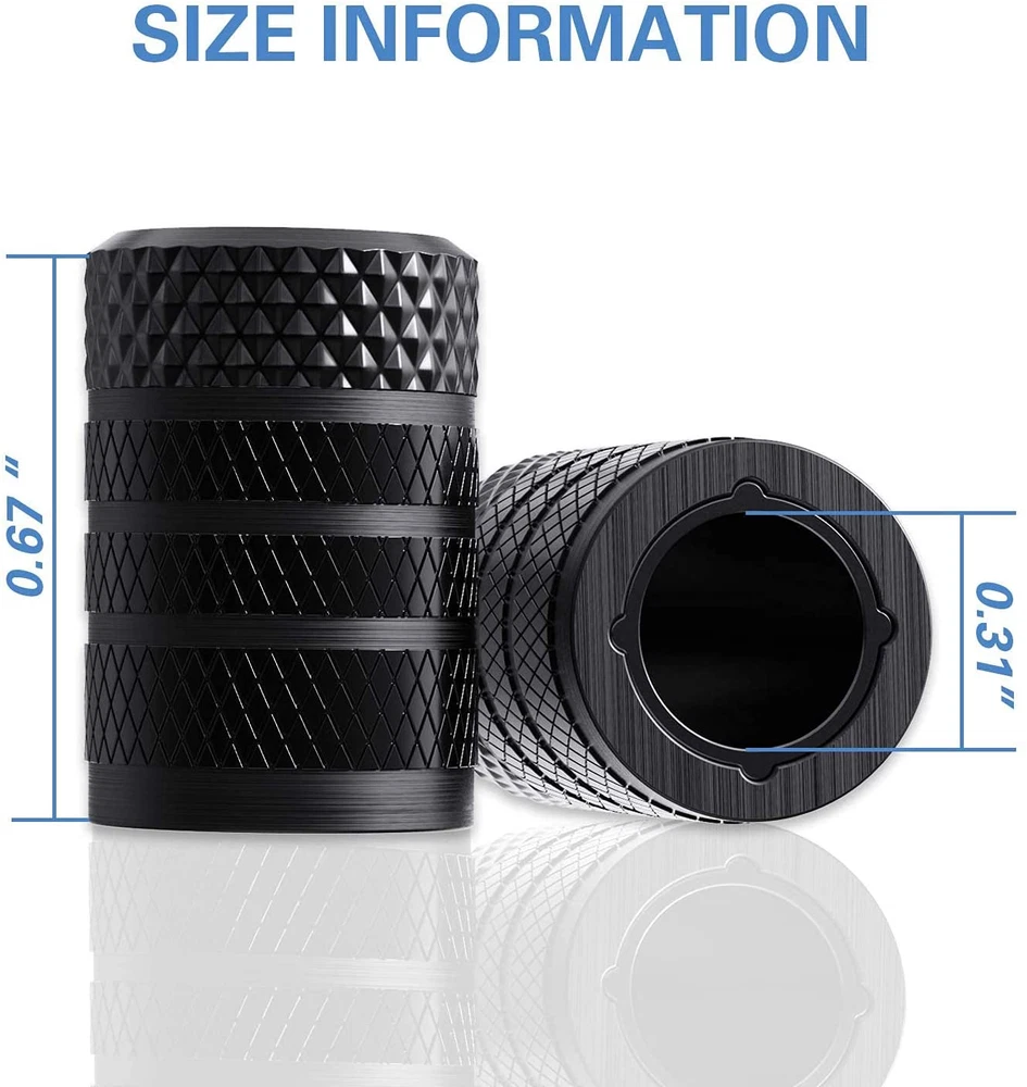 Store New Arrivals Add to Favorite View Feedback Contact Tire Valve Stem Caps, Black, 4 Pcs/Pack, Anodized Aluminum Tire Valve Cap Set, Corrosion Resistant, Universal Stem Covers for Cars Trucks Motorcycles Suvs and Bikes Description Material Aluminum, Plastic, Metal Color Black Item Diameter 0.31 Inches Country of Origin China Vehicle Service Type Passenger Car, SUV, Truck, Motorbike Item Weight 0.2 ounces Shape Round Number of Pieces 4 Is Discontinued By Manufacturer No Fit Type Universal Fit Special Design – Metal materials are prone to rust in the presence of water and oxygen, which may lead to corrosion on valve body. The plastic inner valve caps design combines the attribution of corrosion resistance of plastic and the stylish look of metal. Premium Material – CKAuto Valve Stem Caps are made of high-grade light-weight aluminum alloy, anodized & powder coated finish for maximum strength and durability, surface anodic oxidation treatment makes the color brighter. Easy to install – The design of the tire valve cap rotating thread makes it easy to twist when install or remove. Wide Application – The inner diameter of tire valve caps is 7mm, and the inner height is 13.8mm, so the valve caps universal fit most cars, bicycles, SUVs, trucks, RVs, and other motor vehicles, etc. Why Choose CKAuto – CKAuto Valve Stem Caps address the challenge that some materials that may be desirable for an exterior of the valve cap can react with the materials commonly used for valve threads, and materials that do not react with the valve thread material may be undesirable for the exterior of the cap for aesthetics or performance reasons. Product Description ABOUT US We offer the best prices around on high quality products. Our E-store includes media such as books, movies, music and games while offering electronics, toys, sporting apparel, clothing, tools, general home, garden items and more. SHIPPING We are always working hard to ensure your package arrives as soon as possible. Please understand that some factors like weather, high postal traffic, and the performance of shipping companies are outside of our control. We offer free shipping to the lower 48 states and ship within 2 business days of payment, usually sooner. We do not accept P.O. Boxes. Please provide a physical address. RETURNS We offer a 30-Day Return Policy on items which you are not completely satisfied with. You have the option for a full-refund or an exchange of the item. No returns are available on items shipped outside of the USA. PAYMENT We accept PayPal. CONTACT US This page content is yet to come Please ad us to your favorite seller and visit again later Thank You CUSTOMER SATISFACTION We try our very best to make sure every customer is completely satisfied. If there's a problem, message us! We're happy to help.