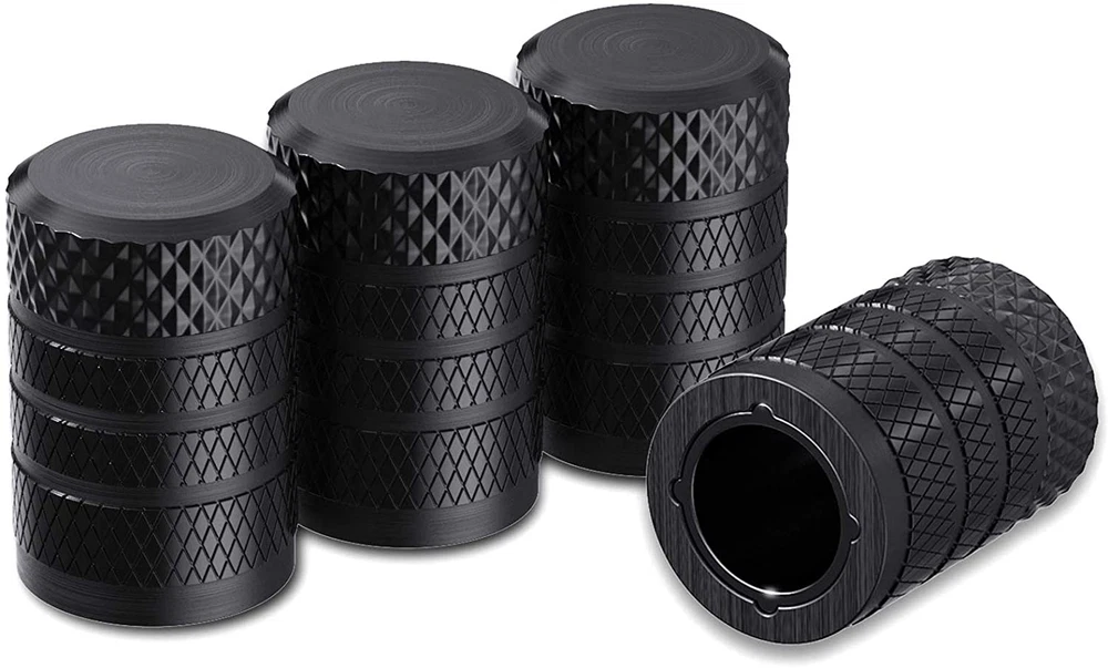 Tire Valve Stem Caps, Black, 4 Pcs/Pack, Anodized Aluminum Tire Valve Cap Set, C
