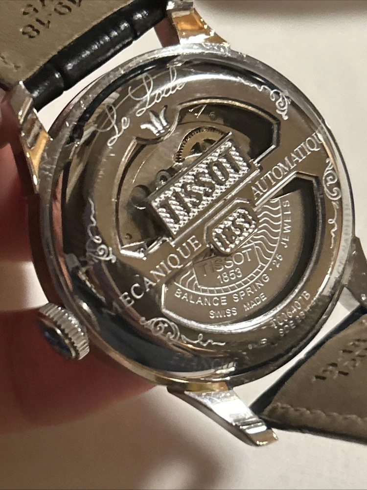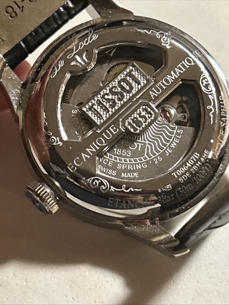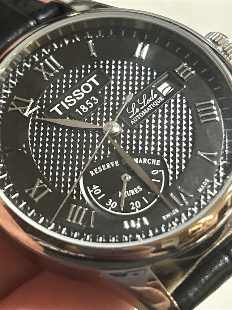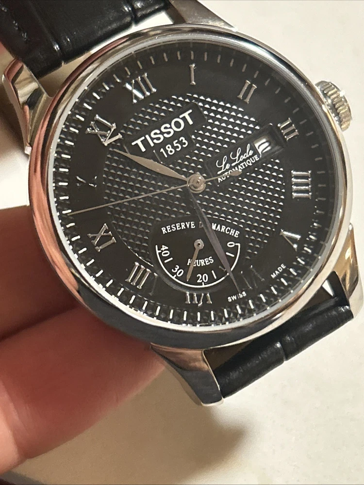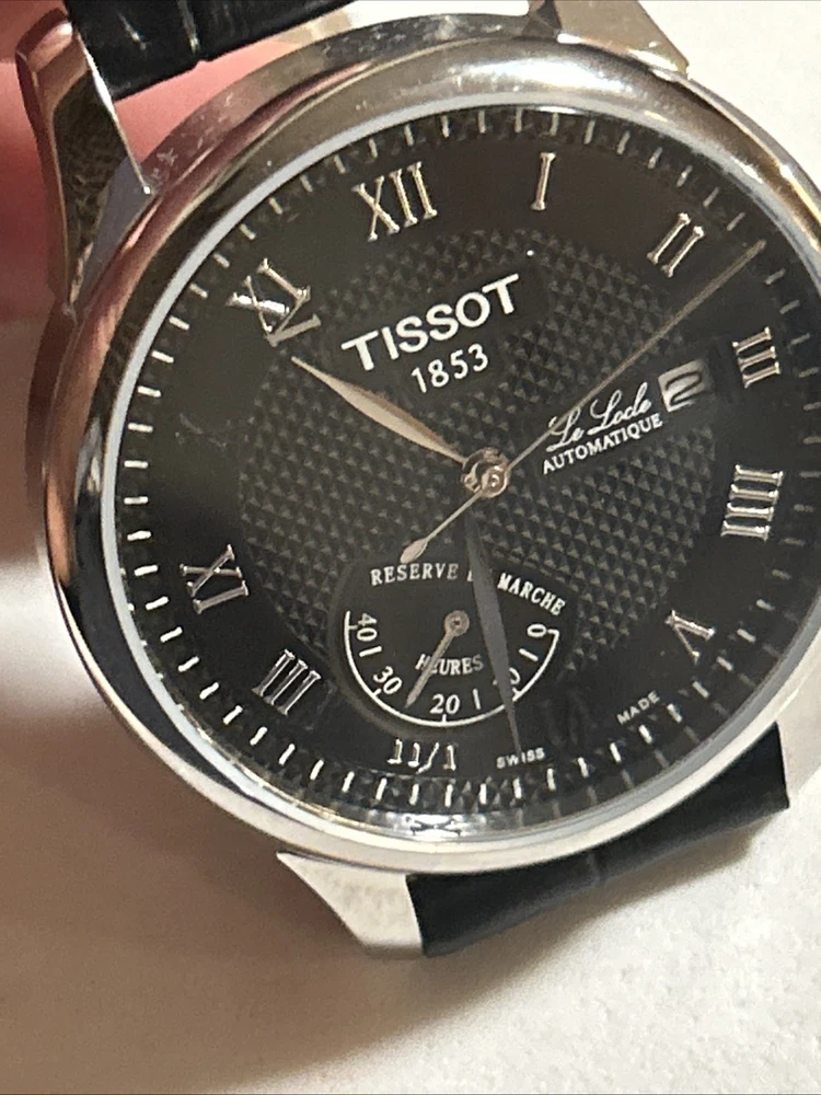 This Tissot Le Locle 1853 is a stunning automatic watch with timeless elegance. The silver stainless steel case and black dial with baton indexes give it a sophisticated look, while the mechanical movement ensures precision. Though it shows some wear and lacks papers, it’s a fantastic value for a Swiss-made timepiece. Perfect for those who appreciate classic style and reliability!