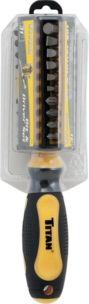 Manufacturer Warranty: Lifetime Type: Multi-Bit Driver Brand: TITAN Professional Tools UPC: 802090160684 Country/Region of Manufacture: China Features: Additional Bits, Anti-Roll Handle, Bit Holder, Cushion Grip, Ergonomic Grip, Includes Case MPN: 16068 gtin13: 802090160684 Number of Pieces: 31