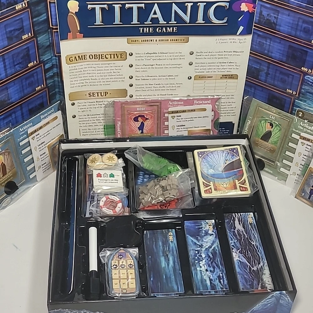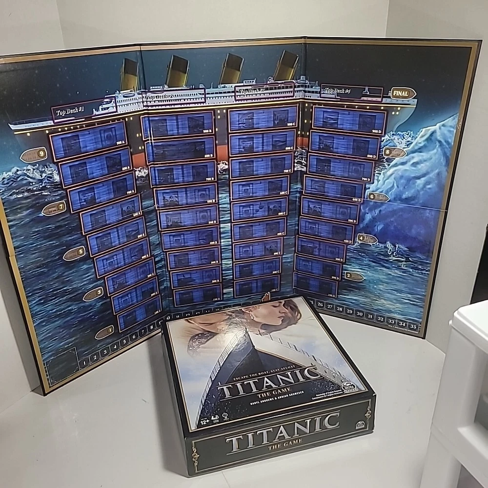 Embark on a thrilling journey with the "Titanic: Escape the Boat, Stay Afloat" Board Game, designed by Spin Master Games. This engaging game allows players to experience the legendary adventure of the RMS Titanic. With a minimum requirement of 2 players, it's perfect for both teens and adults, recommended for ages 12 and up. Condition: The condition of this game is very good. Please take a moment to look at the photos to see the condition for yourself. Specifications: - Title: Titanic: Escape the Boat, Stay Afloat - Manufacturer: Spin Master Games - Release Year: 2020 - Recommended Age: 12 and up - Minimum Players: 2 - Theme: Escape, strategy, teamwork Features: The game comes with a striking Jack and Rose box cover, adding to the allure of this contemporary manufactured game. The theme revolves around escape, providing an immersive experience that challenges strategic thinking and teamwork. This is a complete set, and whether you're a boy or a girl, this game promises an entertaining and competitive gameplay session. Shipping: Shipping is limited to addresses within the United States. Typically, items are packed and shipped the next day and occasionally on the same day (excluding holidays and Sundays). I use USPS Ground Advanced for standard shipping. If you would like to opt for a faster shipping service, please message me prior to completing your purchase, and I will adjust the shipping options accordingly. You will be very satisfied with this purchase! Don’t miss out on this captivating board game adventure—get ready to escape the Titanic and stay afloat in a race against time!