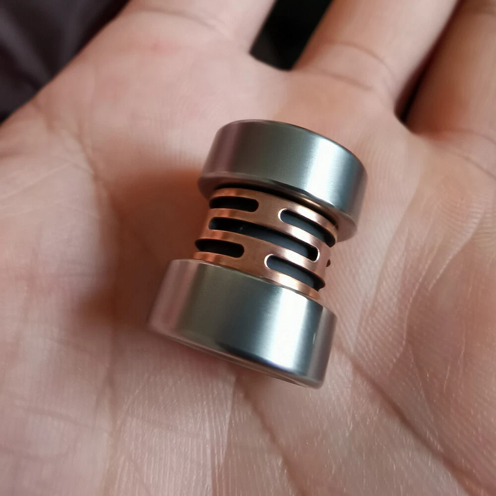 You must know before you buy There are titanium alloy, stainless steel, zirconium alloy, a variety of materials to choose from, there is always one suitable for you. The middle is hollowed out, and the two colors are matched, which is very cool. Multifunctional pendant, can be used as your beloved knife pendant, can also be matched with necklaces, keychains, etc., contain your whimsy. Split design: The two ends can be unscrewed and divided into upper, middle and lower parts, giving you more DIY space. Material: 304 Stainless Steel, TC4 Titanium Alloy, Zirconium Alloy, Brass, Red Copper Dimensions: length about 19.5mm(~0.77"), diameter about 16mm(~0.63"), Holediameter about 6mm(~0.24") Weight: about 5g(~0.18oz) Package Included:1pcs Knife Pendant(Your choice) (The picture is for display only and does not include other accessories other than the product!) Function: Cool and Unique Design. The perfect lanyard bead for your zipper, backpack, keyring or pocket knife. Exquisite Workmanship. Chamfered edges to significantly reduce wear and fraying with extended use. Large Hole Size. Specifically made for and sized for a pair of ungutted 550 paracord to snugly fit through the center. Note: 1):Due to the different monitor and light effect,the actual color of the item might be slightly different from the color showed on the pictures. 2):The size Weight of the product is measured manually,there will be a certain error,please understand. 3):Because the factory batch is different,so there may be a small difference,please refer to the goods actually received pls make sure you do not mind before you bid. Hope you can understand. Thank you!