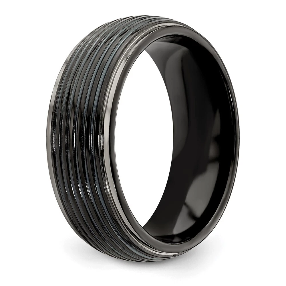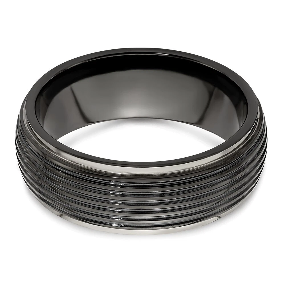 Band Width:8 mm|Material: Primary:Titanium|Ring Fit:Standard|Sizeable:No|Warranty:Limited Lifetime Warranty|Item Weight U/M:gm|Engravable:Yes|Packaging:Gift Boxed|Product Type:Jewelry|Jewelry Type:Rings|Texture:Grooved|Material: Primary - Color:Grey|Ring Type:Wedding Bands|Edge Type:Step Down|Ring Shape:Domed All weights and measurements are approximate and may vary slightly from the listed information. Welcome to diamond_6720 Payments We accept all Ebay approved payment. Please sent the payment to us within 8 days after the auction has ended, or you will have unpaid case auto open by eBay. Shipping Policy We will ship all items within 1 business days of purchase during the work week (M-F) excluding holidays. If you order on Friday, your order will be shipped the following business day. Tracking will be provided when it becomes available. We will only ship to a PayPal Verified Address. Please make sure your address is current and correct. If the information does not match, your order may be canceled. Buyers are responsible for all customs, duties and taxes for your respective countries. Delivery times for International Shipping will vary. California Buyers Pay 9.0% Tax on all orders. case auto open by eBay. Return Policy & Exchange Returns or Exchange are accepted. Buyer must contact us within 30 days after the item is received. Item must be returned in unworn and resalable condition. We will only issue a refund for the purchase price, excluding any shipping fees. If we are at fault, we will provide a full refund. Buyer is responsible for all return shipping costs. BUYERS FEEDBACK If you have any concerns regarding your purchase, please contact us via eBay Message, we assure you that a satisfactory resolution will be reached. Your feedback is very important to us Do remember to give us 5 star rating(*****) if you are satisfied with our product & service .