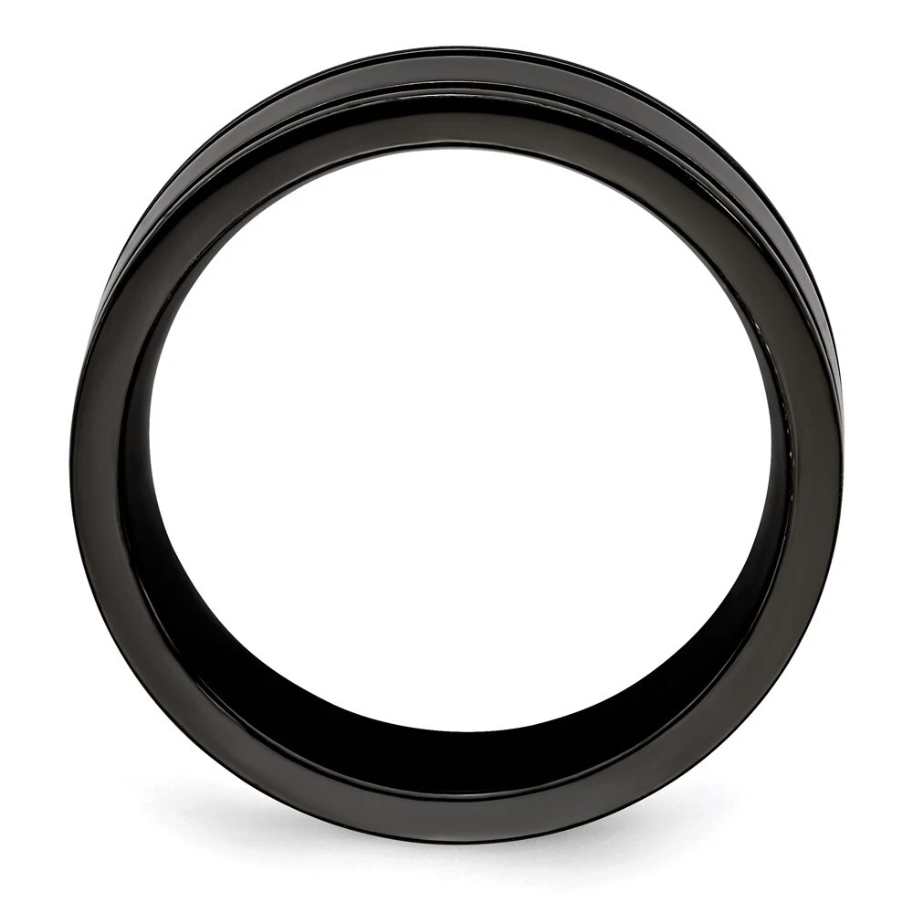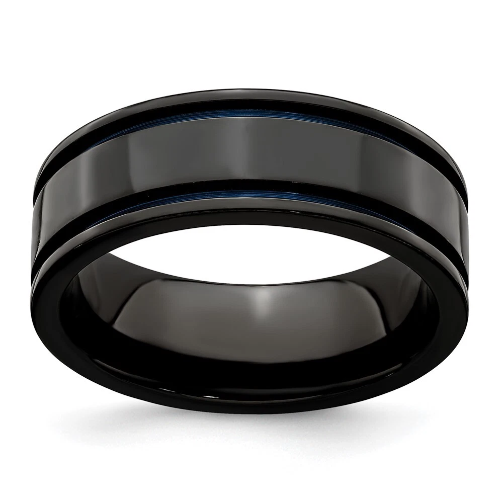 Titanium Black Titanium with Blue Anodized Grooves Flat 8mm Band Ring Size 11