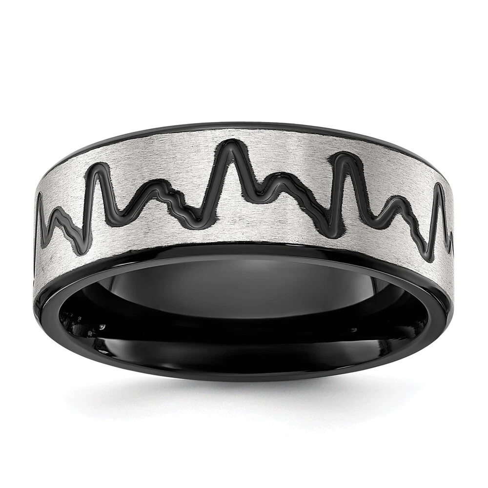 Titanium Brushed Black IP-plated Heartbeat 8mm Band Ring Size 11