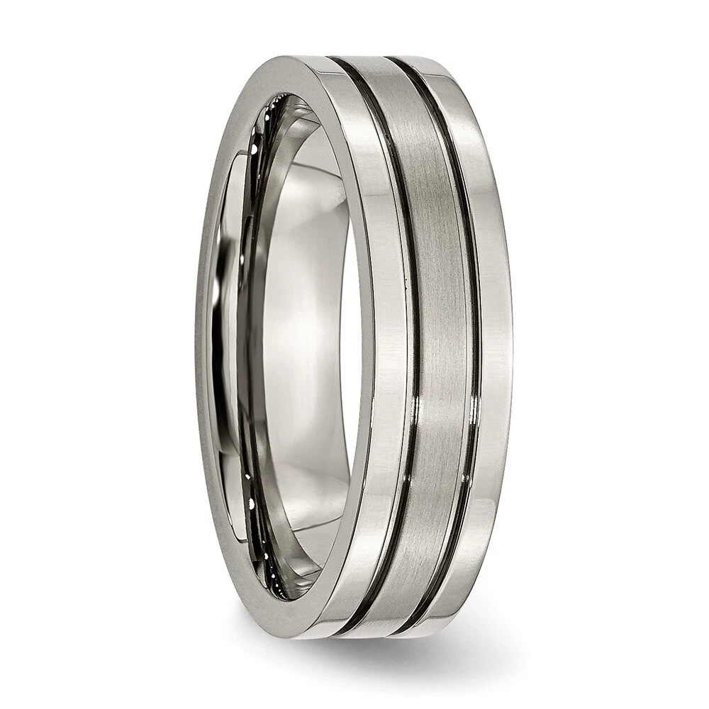 Finish:Polished & Brushed|Band Width:6 mm|Material: Primary:Titanium|Ring Fit:Standard|Sizeable:No|Item Weight U/M:gm|Width of Item:6 mm|Engravable:Yes|Packaging:Gift Pouch|Product Type:Jewelry|Jewelry Type:Rings|Sold By Unit:Each|Gender:Unisex|Texture:Grooved|Material: Primary - Color:Grey|Ring Type:Wedding Bands|Edge Type:Flat|Ring Shape:Flat All weights and measurements are approximate and may vary slightly from the listed information. Welcome to diamond_6720 Payments We accept all Ebay approved payment. Please sent the payment to us within 8 days after the auction has ended, or you will have unpaid case auto open by eBay. Shipping Policy We will ship all items within 1 business days of purchase during the work week (M-F) excluding holidays. If you order on Friday, your order will be shipped the following business day. Tracking will be provided when it becomes available. We will only ship to a PayPal Verified Address. Please make sure your address is current and correct. If the information does not match, your order may be canceled. Buyers are responsible for all customs, duties and taxes for your respective countries. Delivery times for International Shipping will vary. California Buyers Pay 9.0% Tax on all orders. case auto open by eBay. Return Policy & Exchange Returns or Exchange are accepted. Buyer must contact us within 30 days after the item is received. Item must be returned in unworn and resalable condition. We will only issue a refund for the purchase price, excluding any shipping fees. If we are at fault, we will provide a full refund. Buyer is responsible for all return shipping costs. BUYERS FEEDBACK If you have any concerns regarding your purchase, please contact us via eBay Message, we assure you that a satisfactory resolution will be reached. Your feedback is very important to us Do remember to give us 5 star rating(*****) if you are satisfied with our product & service .