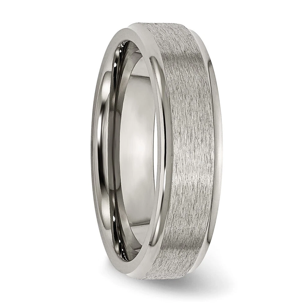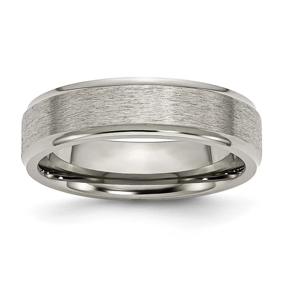 Titanium Brushed Center 6mm Ridged Edge Band Ring Size 10 for Men 3.49gm