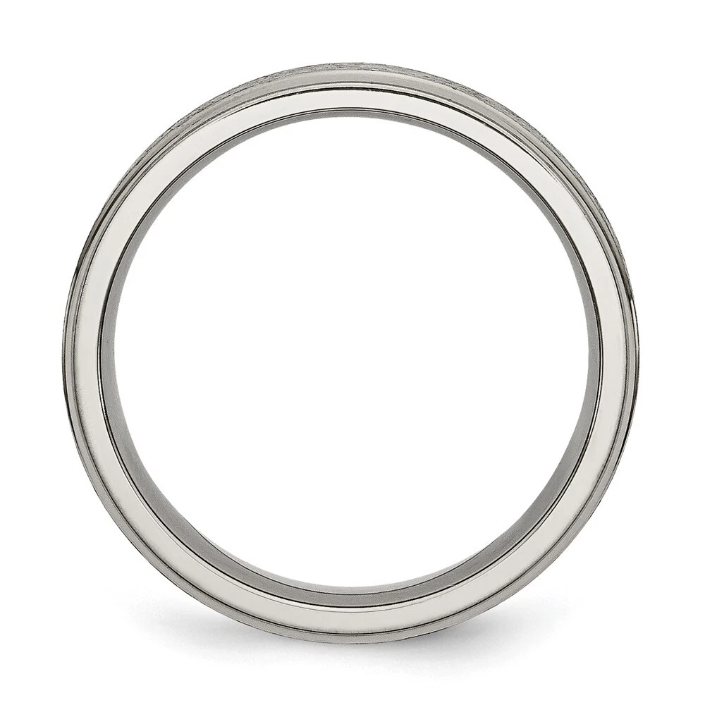 Titanium Brushed Center 6mm Ridged Edge Band Ring Size 6 for Men 3.49gm