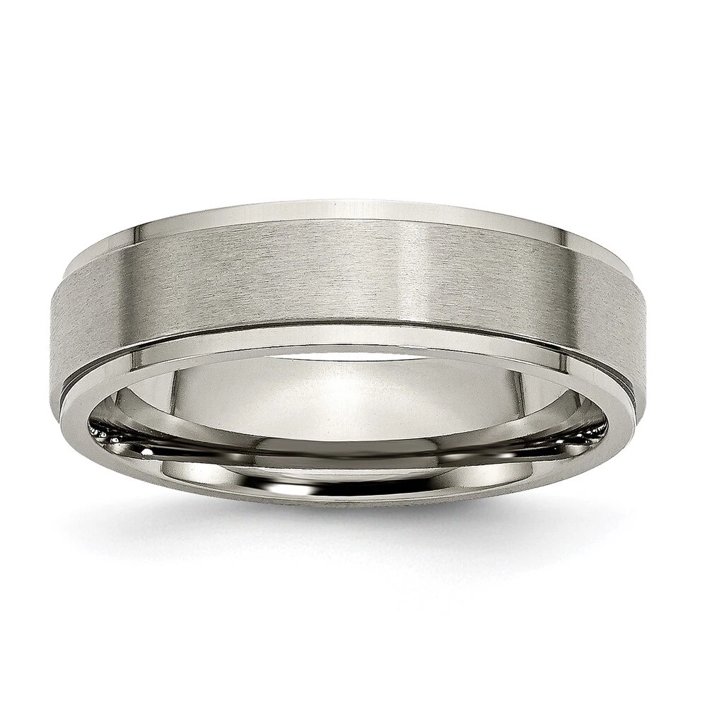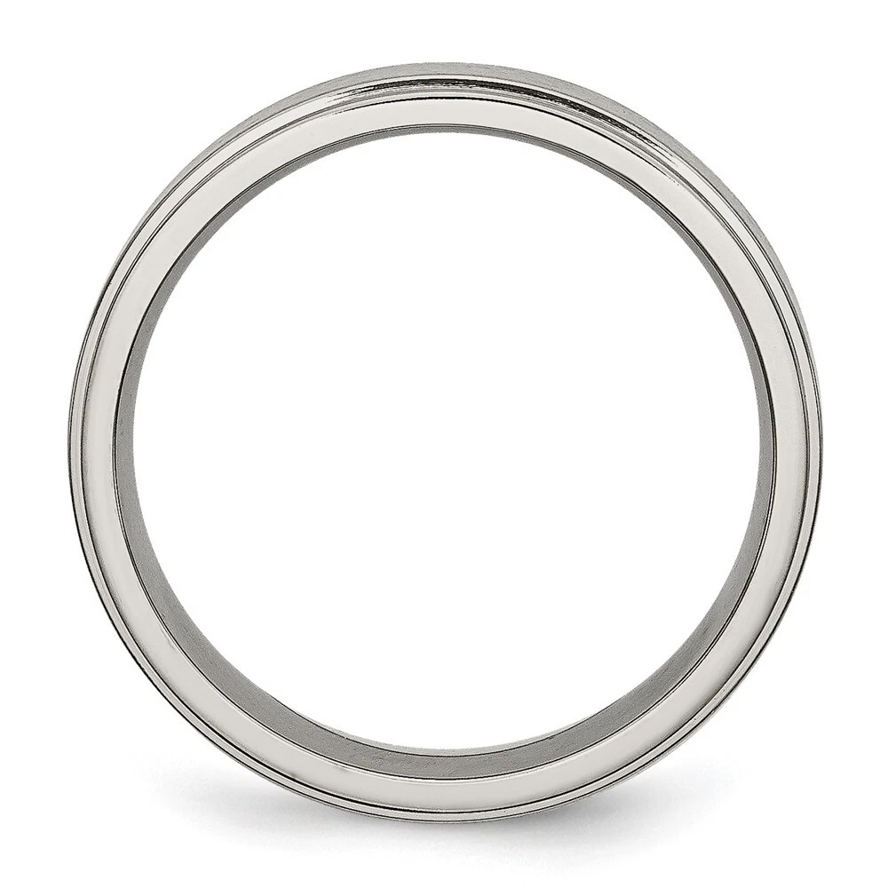 Titanium Brushed Center 6mm Ridged Edge Band Ring Size 7 for Men 3.27gm