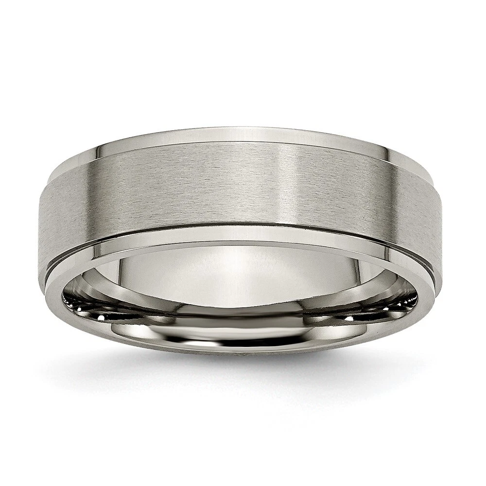 Finish:Polished & Brushed|Band Width:7 mm|Material: Primary:Titanium|Ring Fit:Comfort|Sizeable:No|Thickness:< 2 mm|Item Weight U/M:gm|Width of Item:7 mm|Engravable:Yes|Packaging:Gift Pouch|Product Type:Jewelry|Jewelry Type:Rings|Sold By Unit:Each|Gender:Unisex|Material: Primary - Color:Grey|Ring Type:Wedding Bands|Edge Type:Ridged|Ring Shape:Flat All weights and measurements are approximate and may vary slightly from the listed information. Welcome to diamond_6720 Payments We accept all Ebay approved payment. Please sent the payment to us within 8 days after the auction has ended, or you will have unpaid case auto open by eBay. Shipping Policy We will ship all items within 1 business days of purchase during the work week (M-F) excluding holidays. If you order on Friday, your order will be shipped the following business day. Tracking will be provided when it becomes available. We will only ship to a PayPal Verified Address. Please make sure your address is current and correct. If the information does not match, your order may be canceled. Buyers are responsible for all customs, duties and taxes for your respective countries. Delivery times for International Shipping will vary. California Buyers Pay 9.0% Tax on all orders. case auto open by eBay. Return Policy & Exchange Returns or Exchange are accepted. Buyer must contact us within 30 days after the item is received. Item must be returned in unworn and resalable condition. We will only issue a refund for the purchase price, excluding any shipping fees. If we are at fault, we will provide a full refund. Buyer is responsible for all return shipping costs. BUYERS FEEDBACK If you have any concerns regarding your purchase, please contact us via eBay Message, we assure you that a satisfactory resolution will be reached. Your feedback is very important to us Do remember to give us 5 star rating(*****) if you are satisfied with our product & service .