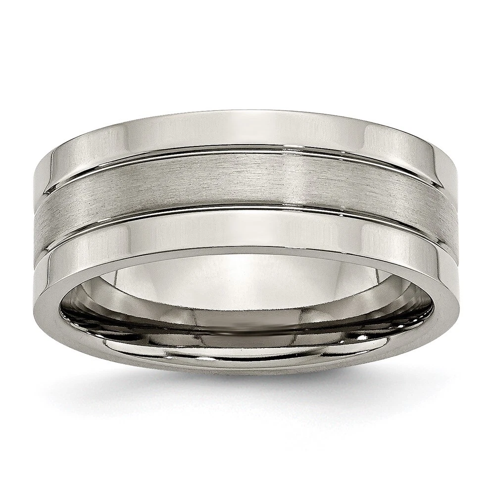 Finish:Polished & Brushed|Band Width:8 mm|Material: Primary:Titanium|Ring Fit:Standard|Sizeable:No|Thickness:< 2 mm|Item Weight U/M:gm|Width of Item:8 mm|Engravable:Yes|Packaging:Gift Pouch|Product Type:Jewelry|Jewelry Type:Rings|Sold By Unit:Each|Gender:Unisex|Texture:Grooved|Material: Primary - Color:Grey|Ring Type:Wedding Bands|Edge Type:Flat|Ring Shape:Flat All weights and measurements are approximate and may vary slightly from the listed information. Welcome to diamond_6720 Payments We accept all Ebay approved payment. Please sent the payment to us within 8 days after the auction has ended, or you will have unpaid case auto open by eBay. Shipping Policy We will ship all items within 1 business days of purchase during the work week (M-F) excluding holidays. If you order on Friday, your order will be shipped the following business day. Tracking will be provided when it becomes available. We will only ship to a PayPal Verified Address. Please make sure your address is current and correct. If the information does not match, your order may be canceled. Buyers are responsible for all customs, duties and taxes for your respective countries. Delivery times for International Shipping will vary. California Buyers Pay 9.0% Tax on all orders. case auto open by eBay. Return Policy & Exchange Returns or Exchange are accepted. Buyer must contact us within 30 days after the item is received. Item must be returned in unworn and resalable condition. We will only issue a refund for the purchase price, excluding any shipping fees. If we are at fault, we will provide a full refund. Buyer is responsible for all return shipping costs. BUYERS FEEDBACK If you have any concerns regarding your purchase, please contact us via eBay Message, we assure you that a satisfactory resolution will be reached. Your feedback is very important to us Do remember to give us 5 star rating(*****) if you are satisfied with our product & service .