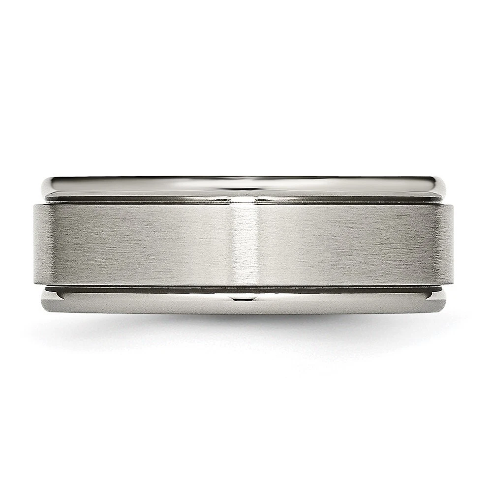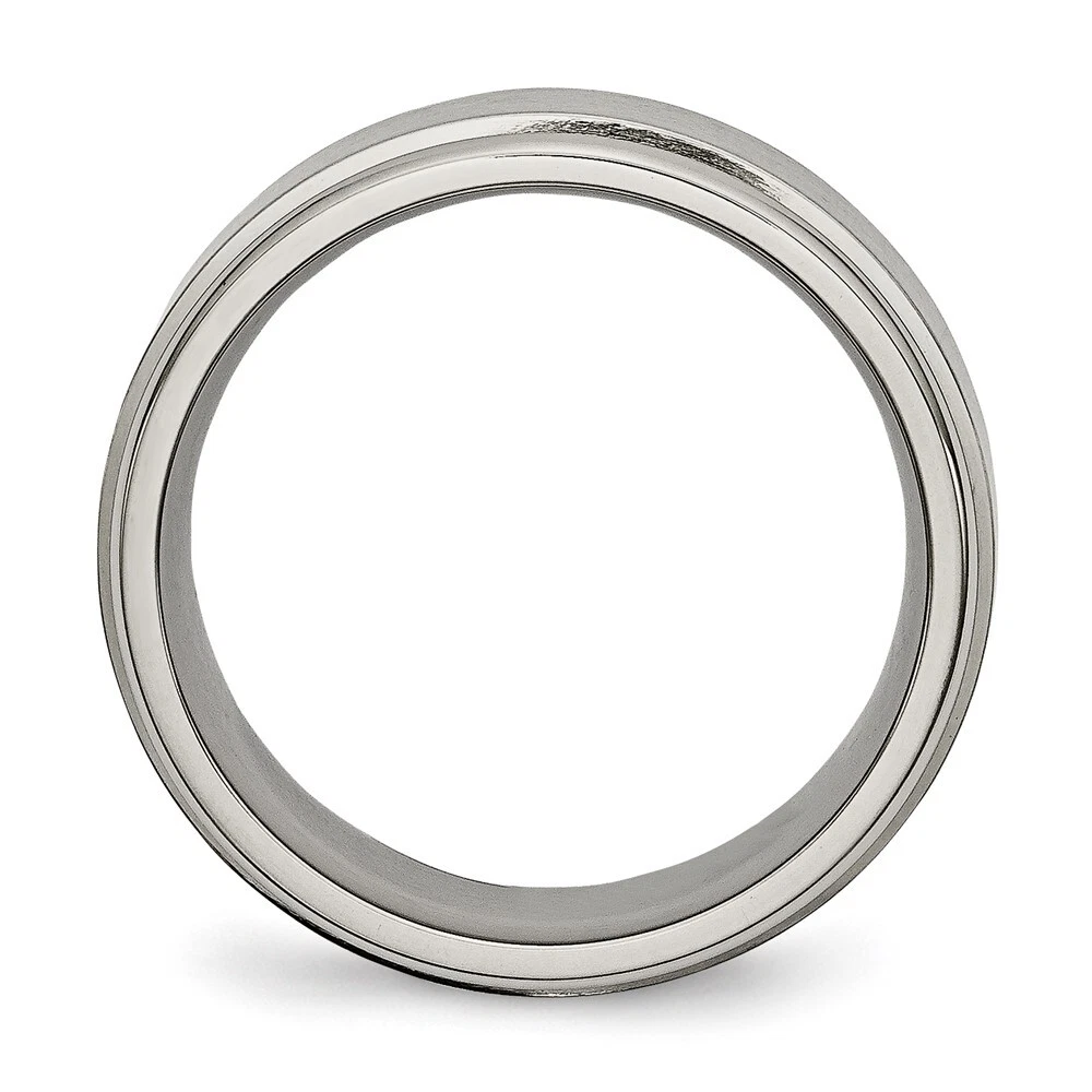 Finish:Polished & Brushed|Band Width:8 mm|Material: Primary:Titanium|Ring Fit:Standard|Sizeable:No|Thickness:< 2.5 mm|Item Weight U/M:gm|Width of Item:8 mm|Engravable:Yes|Packaging:Gift Pouch|Product Type:Jewelry|Jewelry Type:Rings|Sold By Unit:Each|Gender:Unisex|Material: Primary - Color:Grey|Ring Type:Wedding Bands|Edge Type:Ridged All weights and measurements are approximate and may vary slightly from the listed information. Welcome to diamond_6720 Payments We accept all Ebay approved payment. Please sent the payment to us within 8 days after the auction has ended, or you will have unpaid case auto open by eBay. Shipping Policy We will ship all items within 1 business days of purchase during the work week (M-F) excluding holidays. If you order on Friday, your order will be shipped the following business day. Tracking will be provided when it becomes available. We will only ship to a PayPal Verified Address. Please make sure your address is current and correct. If the information does not match, your order may be canceled. Buyers are responsible for all customs, duties and taxes for your respective countries. Delivery times for International Shipping will vary. California Buyers Pay 9.0% Tax on all orders. case auto open by eBay. Return Policy & Exchange Returns or Exchange are accepted. Buyer must contact us within 30 days after the item is received. Item must be returned in unworn and resalable condition. We will only issue a refund for the purchase price, excluding any shipping fees. If we are at fault, we will provide a full refund. Buyer is responsible for all return shipping costs. BUYERS FEEDBACK If you have any concerns regarding your purchase, please contact us via eBay Message, we assure you that a satisfactory resolution will be reached. Your feedback is very important to us Do remember to give us 5 star rating(*****) if you are satisfied with our product & service .