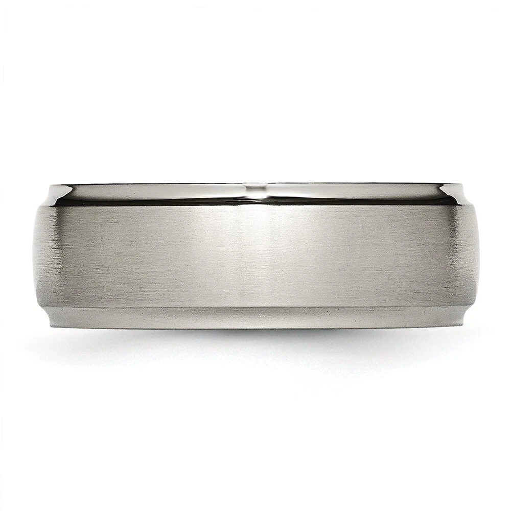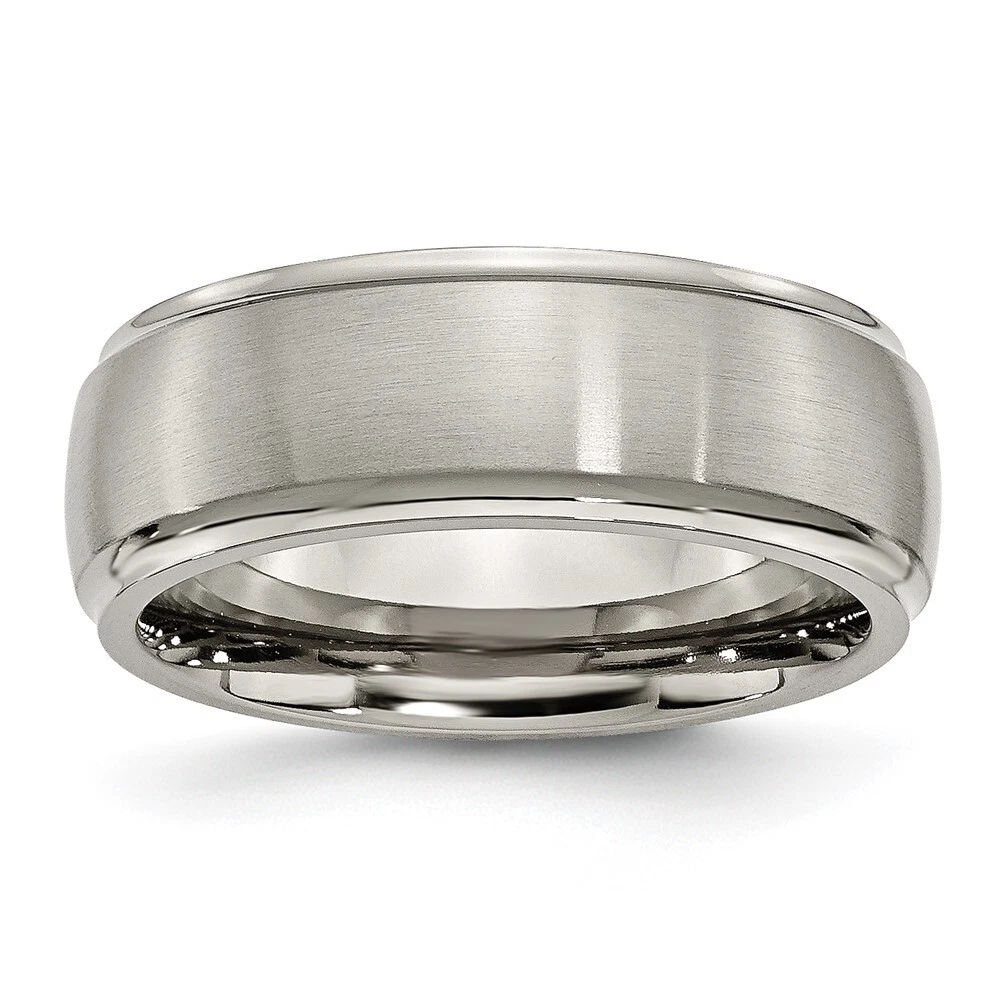 Finish:Brushed|Band Width:8 mm|Feature:Nickel Free|Material: Primary:Titanium|Ring Fit:Comfort|Sizeable:No|Item Weight U/M:gm|Width of Item:8 mm|Engravable:Yes|Packaging:Gift Pouch|Product Type:Jewelry|Jewelry Type:Rings|Sold By Unit:Each|Gender:Unisex|Material: Primary - Color:Grey|Ring Type:Wedding Bands|Edge Type:Ridged|Ring Shape:Domed All weights and measurements are approximate and may vary slightly from the listed information. Welcome to diamond_6720 Payments We accept all Ebay approved payment. Please sent the payment to us within 8 days after the auction has ended, or you will have unpaid case auto open by eBay. Shipping Policy We will ship all items within 1 business days of purchase during the work week (M-F) excluding holidays. If you order on Friday, your order will be shipped the following business day. Tracking will be provided when it becomes available. We will only ship to a PayPal Verified Address. Please make sure your address is current and correct. If the information does not match, your order may be canceled. Buyers are responsible for all customs, duties and taxes for your respective countries. Delivery times for International Shipping will vary. California Buyers Pay 9.0% Tax on all orders. case auto open by eBay. Return Policy & Exchange Returns or Exchange are accepted. Buyer must contact us within 30 days after the item is received. Item must be returned in unworn and resalable condition. We will only issue a refund for the purchase price, excluding any shipping fees. If we are at fault, we will provide a full refund. Buyer is responsible for all return shipping costs. BUYERS FEEDBACK If you have any concerns regarding your purchase, please contact us via eBay Message, we assure you that a satisfactory resolution will be reached. Your feedback is very important to us Do remember to give us 5 star rating(*****) if you are satisfied with our product & service .