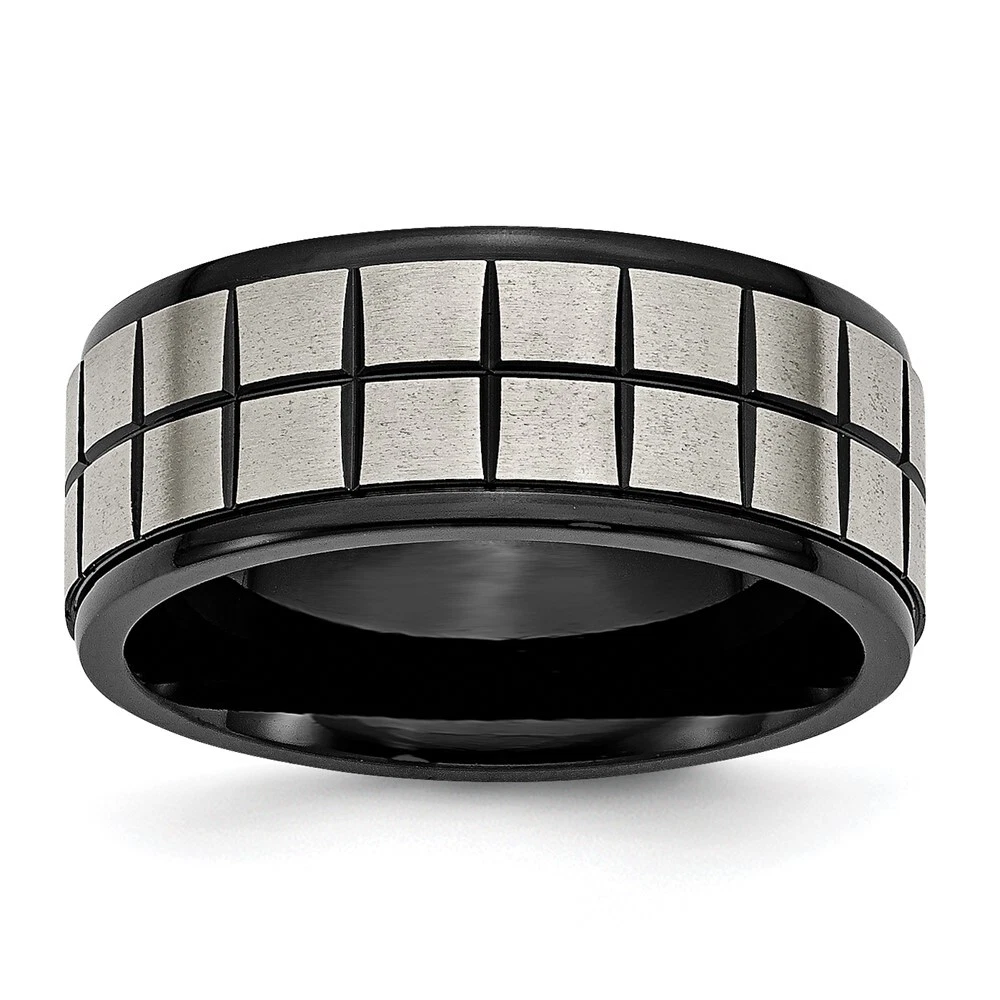 Finish:Polished & Brushed|Plating:IP-Plated|Band Width:9 mm|Material: Primary:Titanium|Ring Fit:Standard|Sizeable:No|Thickness:< 2 mm|Item Weight U/M:gm|Width of Item:9 mm|Engravable:Yes|Packaging:Gift Pouch|Product Type:Jewelry|Jewelry Type:Rings|Sold By Unit:Each|Gender:Unisex|Material: Primary - Color:Grey|Ring Type:Wedding Bands|Edge Type:Step Down|Plating Color:Black|Ring Shape:Flat All weights and measurements are approximate and may vary slightly from the listed information. Welcome to diamond_6720 Payments We accept all Ebay approved payment. Please sent the payment to us within 8 days after the auction has ended, or you will have unpaid case auto open by eBay. Shipping Policy We will ship all items within 1 business days of purchase during the work week (M-F) excluding holidays. If you order on Friday, your order will be shipped the following business day. Tracking will be provided when it becomes available. We will only ship to a PayPal Verified Address. Please make sure your address is current and correct. If the information does not match, your order may be canceled. Buyers are responsible for all customs, duties and taxes for your respective countries. Delivery times for International Shipping will vary. California Buyers Pay 9.0% Tax on all orders. case auto open by eBay. Return Policy & Exchange Returns or Exchange are accepted. Buyer must contact us within 30 days after the item is received. Item must be returned in unworn and resalable condition. We will only issue a refund for the purchase price, excluding any shipping fees. If we are at fault, we will provide a full refund. Buyer is responsible for all return shipping costs. BUYERS FEEDBACK If you have any concerns regarding your purchase, please contact us via eBay Message, we assure you that a satisfactory resolution will be reached. Your feedback is very important to us Do remember to give us 5 star rating(*****) if you are satisfied with our product & service .