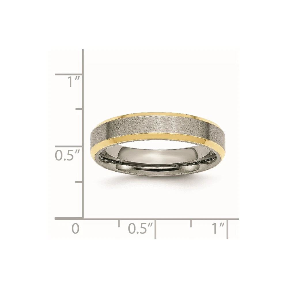 Finish:Polished & Brushed|Plating:IP-Plated|Band Width:5 mm|Material: Primary:Titanium|Ring Fit:Standard|Sizeable:No|Thickness:< 2 mm|Item Weight U/M:gm|Width of Item:5 mm|Engravable:Yes|Packaging:Gift Pouch|Product Type:Jewelry|Jewelry Type:Rings|Sold By Unit:Each|Gender:Unisex|Material: Primary - Color:Grey|Ring Type:Wedding Bands|Edge Type:Beveled|Plating Color:Gold Tone All weights and measurements are approximate and may vary slightly from the listed information. Welcome to diamond_6720 Payments We accept all Ebay approved payment. Please sent the payment to us within 8 days after the auction has ended, or you will have unpaid case auto open by eBay. Shipping Policy We will ship all items within 1 business days of purchase during the work week (M-F) excluding holidays. If you order on Friday, your order will be shipped the following business day. Tracking will be provided when it becomes available. We will only ship to a PayPal Verified Address. Please make sure your address is current and correct. If the information does not match, your order may be canceled. Buyers are responsible for all customs, duties and taxes for your respective countries. Delivery times for International Shipping will vary. California Buyers Pay 9.0% Tax on all orders. case auto open by eBay. Return Policy & Exchange Returns or Exchange are accepted. Buyer must contact us within 30 days after the item is received. Item must be returned in unworn and resalable condition. We will only issue a refund for the purchase price, excluding any shipping fees. If we are at fault, we will provide a full refund. Buyer is responsible for all return shipping costs. BUYERS FEEDBACK If you have any concerns regarding your purchase, please contact us via eBay Message, we assure you that a satisfactory resolution will be reached. Your feedback is very important to us Do remember to give us 5 star rating(*****) if you are satisfied with our product & service .