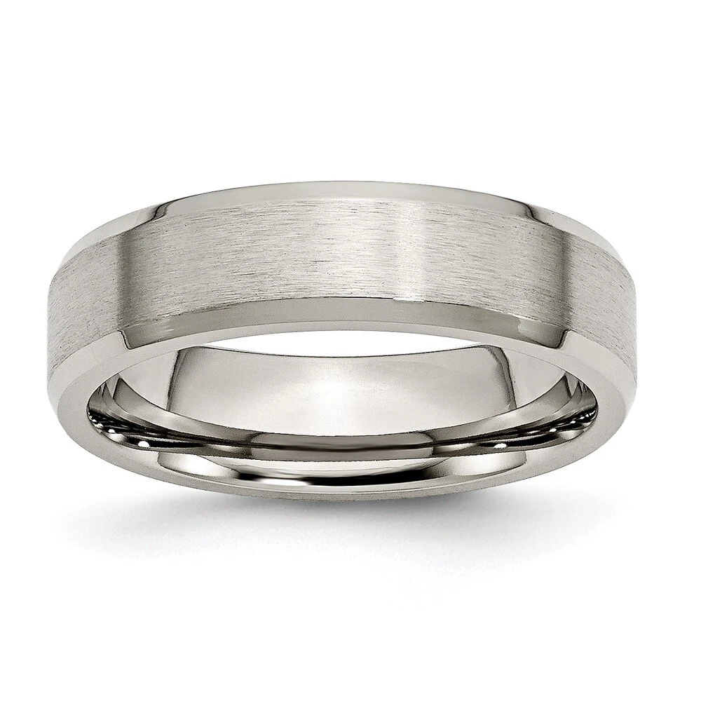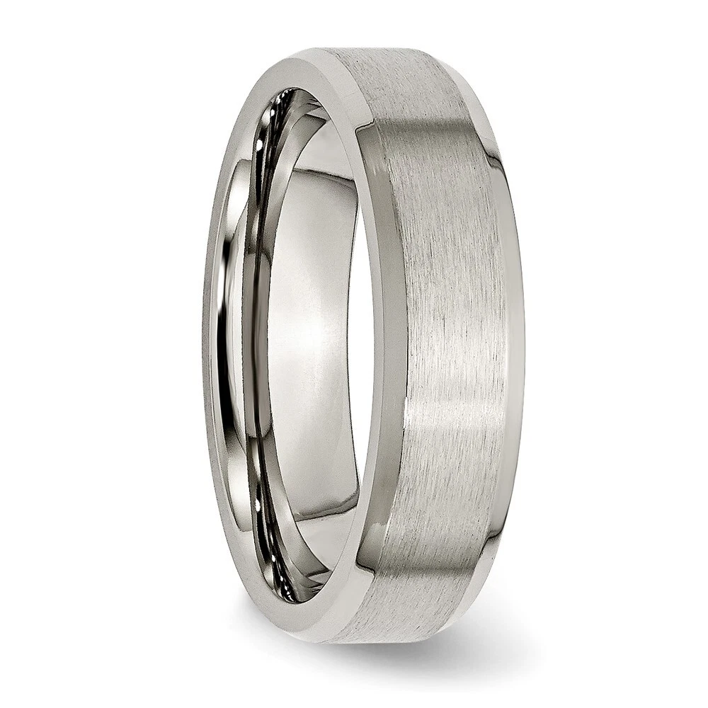 Finish:Polished & Brushed|Band Width:6 mm|Material: Primary:Titanium|Ring Fit:Comfort|Sizeable:No|Thickness:< 2 mm|Item Weight U/M:gm|Width of Item:6 mm|Engravable:Yes|Packaging:Gift Pouch|Product Type:Jewelry|Jewelry Type:Rings|Sold By Unit:Each|Gender:Unisex|Material: Primary - Color:Grey|Ring Type:Wedding Bands|Edge Type:Beveled All weights and measurements are approximate and may vary slightly from the listed information. Welcome to diamond_6720 Payments We accept all Ebay approved payment. Please sent the payment to us within 8 days after the auction has ended, or you will have unpaid case auto open by eBay. Shipping Policy We will ship all items within 1 business days of purchase during the work week (M-F) excluding holidays. If you order on Friday, your order will be shipped the following business day. Tracking will be provided when it becomes available. We will only ship to a PayPal Verified Address. Please make sure your address is current and correct. If the information does not match, your order may be canceled. Buyers are responsible for all customs, duties and taxes for your respective countries. Delivery times for International Shipping will vary. California Buyers Pay 9.0% Tax on all orders. case auto open by eBay. Return Policy & Exchange Returns or Exchange are accepted. Buyer must contact us within 30 days after the item is received. Item must be returned in unworn and resalable condition. We will only issue a refund for the purchase price, excluding any shipping fees. If we are at fault, we will provide a full refund. Buyer is responsible for all return shipping costs. BUYERS FEEDBACK If you have any concerns regarding your purchase, please contact us via eBay Message, we assure you that a satisfactory resolution will be reached. Your feedback is very important to us Do remember to give us 5 star rating(*****) if you are satisfied with our product & service .