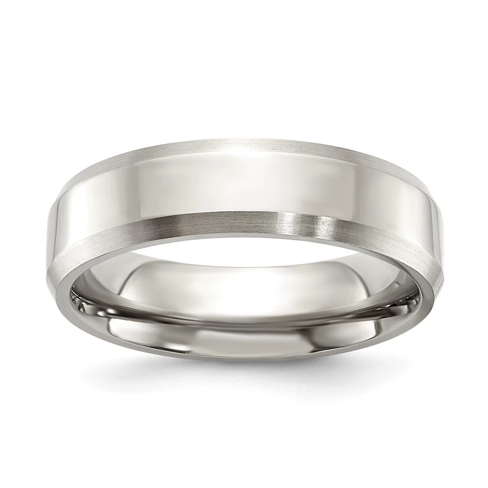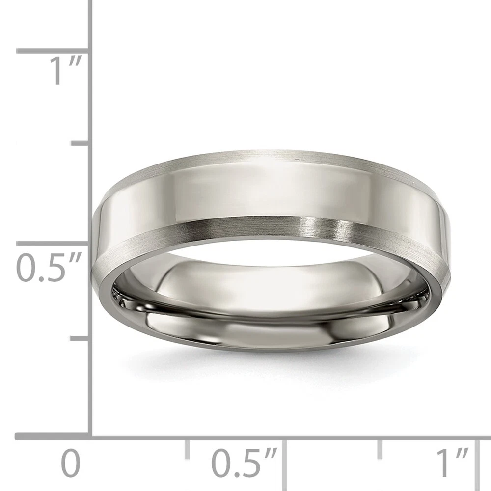 Finish:Polished & Brushed|Band Width:6 mm|Material: Primary:Titanium|Ring Fit:Comfort|Sizeable:No|Thickness:< 2 mm|Item Weight U/M:gm|Width of Item:6 mm|Engravable:Yes|Packaging:Gift Pouch|Product Type:Jewelry|Jewelry Type:Rings|Sold By Unit:Each|Gender:Unisex|Material: Primary - Color:Grey|Ring Type:Wedding Bands|Edge Type:Beveled|Ring Shape:Flat All weights and measurements are approximate and may vary slightly from the listed information. Welcome to diamond_6720 Payments We accept all Ebay approved payment. Please sent the payment to us within 8 days after the auction has ended, or you will have unpaid case auto open by eBay. Shipping Policy We will ship all items within 1 business days of purchase during the work week (M-F) excluding holidays. If you order on Friday, your order will be shipped the following business day. Tracking will be provided when it becomes available. We will only ship to a PayPal Verified Address. Please make sure your address is current and correct. If the information does not match, your order may be canceled. Buyers are responsible for all customs, duties and taxes for your respective countries. Delivery times for International Shipping will vary. California Buyers Pay 9.0% Tax on all orders. case auto open by eBay. Return Policy & Exchange Returns or Exchange are accepted. Buyer must contact us within 30 days after the item is received. Item must be returned in unworn and resalable condition. We will only issue a refund for the purchase price, excluding any shipping fees. If we are at fault, we will provide a full refund. Buyer is responsible for all return shipping costs. BUYERS FEEDBACK If you have any concerns regarding your purchase, please contact us via eBay Message, we assure you that a satisfactory resolution will be reached. Your feedback is very important to us Do remember to give us 5 star rating(*****) if you are satisfied with our product & service .