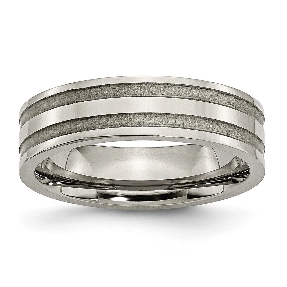 Finish:Polished & Brushed|Band Width:6 mm|Material: Primary:Titanium|Ring Fit:Standard|Sizeable:No|Thickness:< 2 mm|Item Weight U/M:gm|Width of Item:6 mm|Engravable:Yes|Packaging:Gift Pouch|Product Type:Jewelry|Jewelry Type:Rings|Sold By Unit:Each|Gender:Unisex|Texture:Grooved|Material: Primary - Color:Grey|Ring Type:Wedding Bands|Edge Type:Flat|Ring Shape:Flat All weights and measurements are approximate and may vary slightly from the listed information. Welcome to diamond_6720 Payments We accept all Ebay approved payment. Please sent the payment to us within 8 days after the auction has ended, or you will have unpaid case auto open by eBay. Shipping Policy We will ship all items within 1 business days of purchase during the work week (M-F) excluding holidays. If you order on Friday, your order will be shipped the following business day. Tracking will be provided when it becomes available. We will only ship to a PayPal Verified Address. Please make sure your address is current and correct. If the information does not match, your order may be canceled. Buyers are responsible for all customs, duties and taxes for your respective countries. Delivery times for International Shipping will vary. California Buyers Pay 9.0% Tax on all orders. case auto open by eBay. Return Policy & Exchange Returns or Exchange are accepted. Buyer must contact us within 30 days after the item is received. Item must be returned in unworn and resalable condition. We will only issue a refund for the purchase price, excluding any shipping fees. If we are at fault, we will provide a full refund. Buyer is responsible for all return shipping costs. BUYERS FEEDBACK If you have any concerns regarding your purchase, please contact us via eBay Message, we assure you that a satisfactory resolution will be reached. Your feedback is very important to us Do remember to give us 5 star rating(*****) if you are satisfied with our product & service .