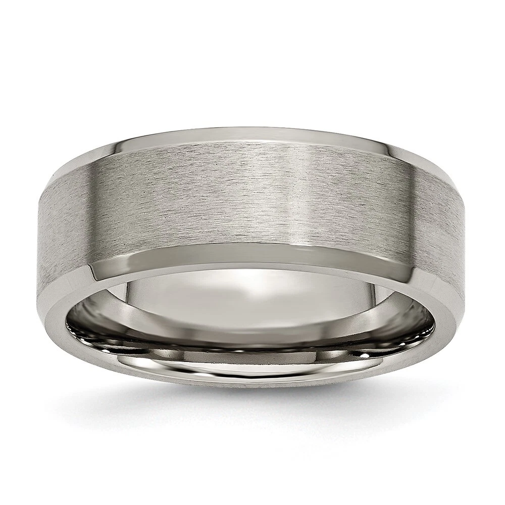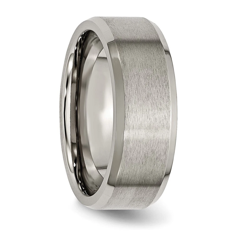 Finish:Polished & Brushed|Band Width:8 mm|Material: Primary:Titanium|Ring Fit:Standard|Sizeable:No|Thickness:< 2 mm|Item Weight U/M:gm|Width of Item:8 mm|Engravable:Yes|Packaging:Gift Pouch|Product Type:Jewelry|Jewelry Type:Rings|Sold By Unit:Each|Gender:Unisex|Material: Primary - Color:Grey|Ring Type:Wedding Bands|Edge Type:Beveled|Ring Shape:Flat All weights and measurements are approximate and may vary slightly from the listed information. Welcome to diamond_6720 Payments We accept all Ebay approved payment. Please sent the payment to us within 8 days after the auction has ended, or you will have unpaid case auto open by eBay. Shipping Policy We will ship all items within 1 business days of purchase during the work week (M-F) excluding holidays. If you order on Friday, your order will be shipped the following business day. Tracking will be provided when it becomes available. We will only ship to a PayPal Verified Address. Please make sure your address is current and correct. If the information does not match, your order may be canceled. Buyers are responsible for all customs, duties and taxes for your respective countries. Delivery times for International Shipping will vary. California Buyers Pay 9.0% Tax on all orders. case auto open by eBay. Return Policy & Exchange Returns or Exchange are accepted. Buyer must contact us within 30 days after the item is received. Item must be returned in unworn and resalable condition. We will only issue a refund for the purchase price, excluding any shipping fees. If we are at fault, we will provide a full refund. Buyer is responsible for all return shipping costs. BUYERS FEEDBACK If you have any concerns regarding your purchase, please contact us via eBay Message, we assure you that a satisfactory resolution will be reached. Your feedback is very important to us Do remember to give us 5 star rating(*****) if you are satisfied with our product & service .