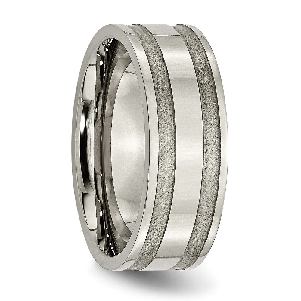 Finish:Polished & Brushed|Band Width:8 mm|Material: Primary:Titanium|Ring Fit:Standard|Sizeable:No|Thickness:< 2 mm|Item Weight U/M:gm|Width of Item:8 mm|Engravable:Yes|Packaging:Gift Pouch|Product Type:Jewelry|Jewelry Type:Rings|Sold By Unit:Each|Gender:Unisex|Texture:Grooved|Material: Primary - Color:Grey|Ring Type:Wedding Bands|Edge Type:Flat|Ring Shape:Flat All weights and measurements are approximate and may vary slightly from the listed information. Welcome to diamond_6720 Payments We accept all Ebay approved payment. Please sent the payment to us within 8 days after the auction has ended, or you will have unpaid case auto open by eBay. Shipping Policy We will ship all items within 1 business days of purchase during the work week (M-F) excluding holidays. If you order on Friday, your order will be shipped the following business day. Tracking will be provided when it becomes available. We will only ship to a PayPal Verified Address. Please make sure your address is current and correct. If the information does not match, your order may be canceled. Buyers are responsible for all customs, duties and taxes for your respective countries. Delivery times for International Shipping will vary. California Buyers Pay 9.0% Tax on all orders. case auto open by eBay. Return Policy & Exchange Returns or Exchange are accepted. Buyer must contact us within 30 days after the item is received. Item must be returned in unworn and resalable condition. We will only issue a refund for the purchase price, excluding any shipping fees. If we are at fault, we will provide a full refund. Buyer is responsible for all return shipping costs. BUYERS FEEDBACK If you have any concerns regarding your purchase, please contact us via eBay Message, we assure you that a satisfactory resolution will be reached. Your feedback is very important to us Do remember to give us 5 star rating(*****) if you are satisfied with our product & service .