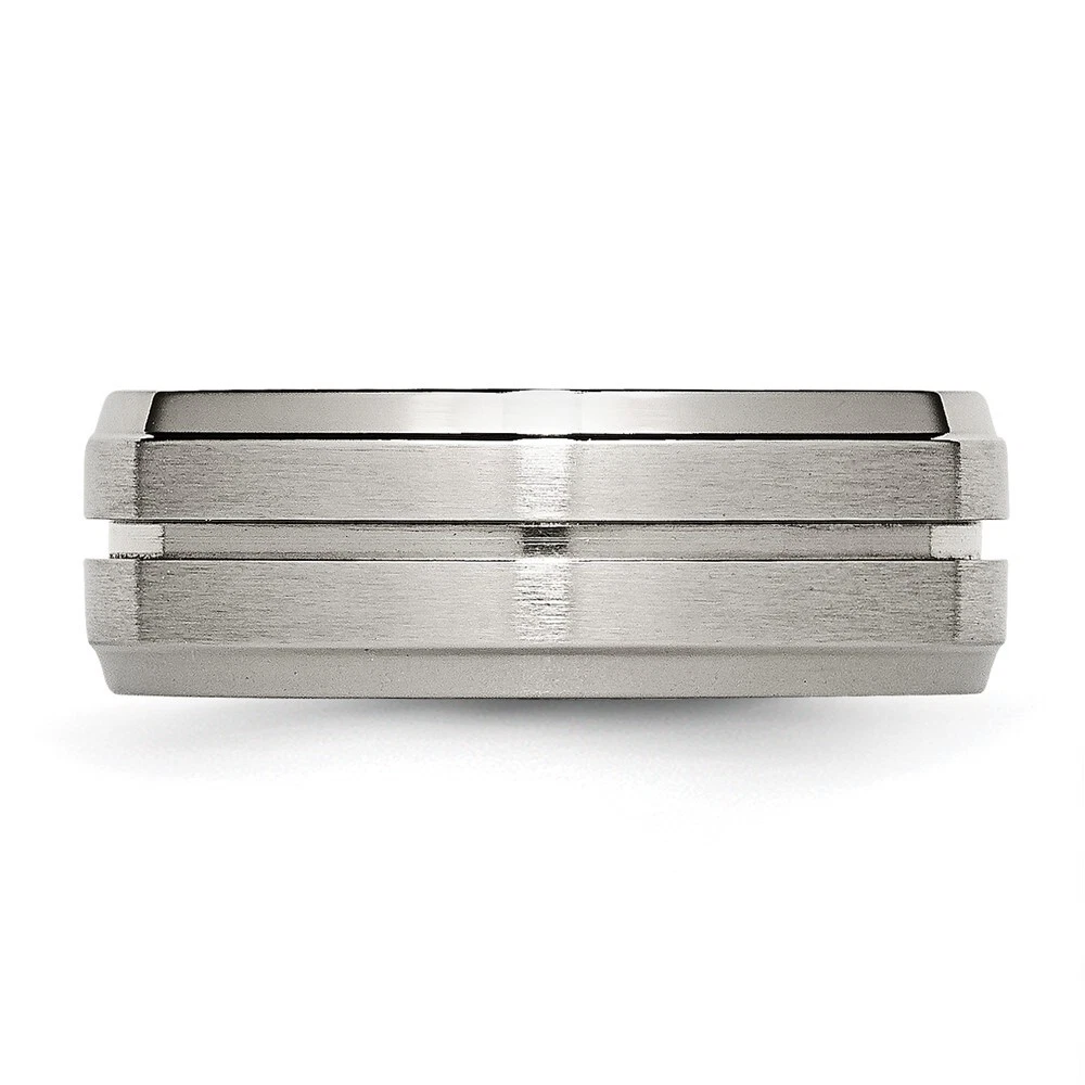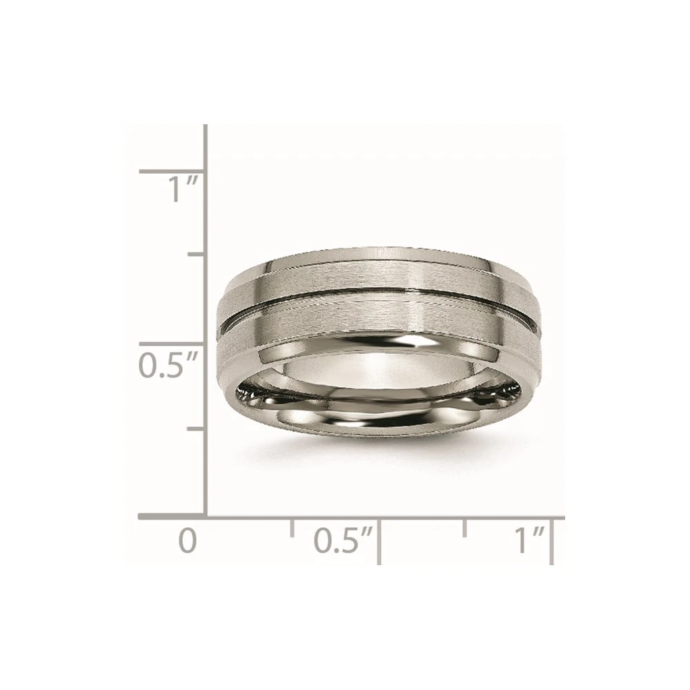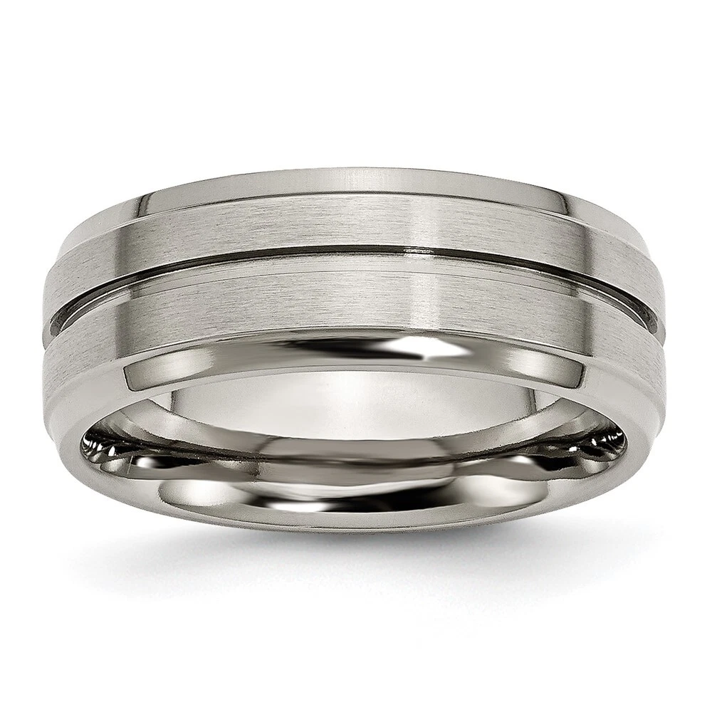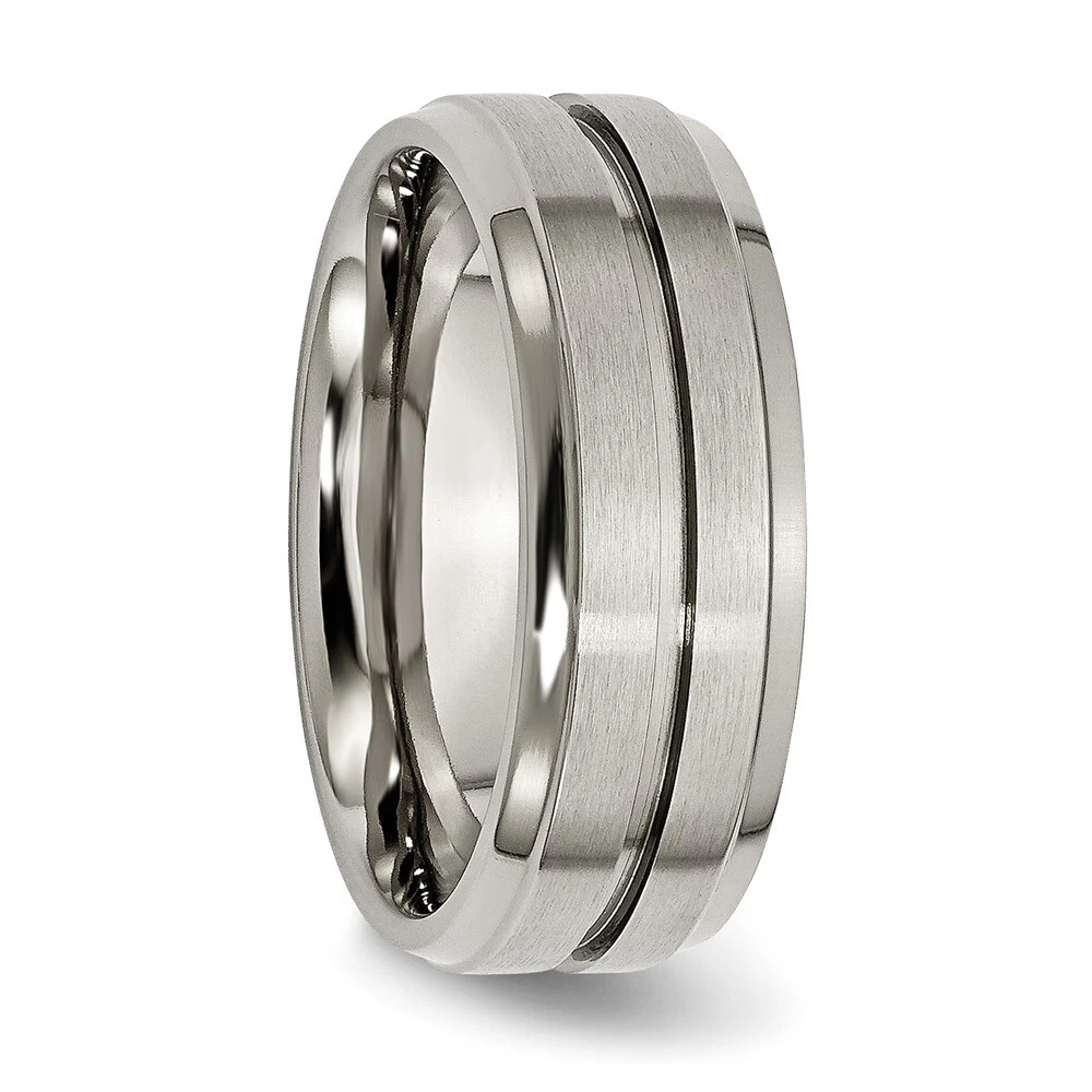 Finish:Polished & Brushed|Band Width:8 mm|Material: Primary:Titanium|Ring Fit:Standard|Sizeable:No|Item Weight U/M:gm|Width of Item:8 mm|Engravable:Yes|Packaging:Gift Pouch|Product Type:Jewelry|Jewelry Type:Rings|Sold By Unit:Each|Gender:Unisex|Texture:Grooved|Material: Primary - Color:Grey|Ring Type:Wedding Bands|Edge Type:Ridged All weights and measurements are approximate and may vary slightly from the listed information. Welcome to diamond_6720 Payments We accept all Ebay approved payment. Please sent the payment to us within 8 days after the auction has ended, or you will have unpaid case auto open by eBay. Shipping Policy We will ship all items within 1 business days of purchase during the work week (M-F) excluding holidays. If you order on Friday, your order will be shipped the following business day. Tracking will be provided when it becomes available. We will only ship to a PayPal Verified Address. Please make sure your address is current and correct. If the information does not match, your order may be canceled. Buyers are responsible for all customs, duties and taxes for your respective countries. Delivery times for International Shipping will vary. California Buyers Pay 9.0% Tax on all orders. case auto open by eBay. Return Policy & Exchange Returns or Exchange are accepted. Buyer must contact us within 30 days after the item is received. Item must be returned in unworn and resalable condition. We will only issue a refund for the purchase price, excluding any shipping fees. If we are at fault, we will provide a full refund. Buyer is responsible for all return shipping costs. BUYERS FEEDBACK If you have any concerns regarding your purchase, please contact us via eBay Message, we assure you that a satisfactory resolution will be reached. Your feedback is very important to us Do remember to give us 5 star rating(*****) if you are satisfied with our product & service .