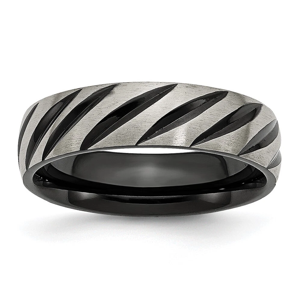 Finish:Polished & Brushed|Plating:IP-Plated|Band Width:6 mm|Material: Primary:Titanium|Ring Fit:Standard|Sizeable:No|Thickness:< 2 mm|Item Weight U/M:gm|Width of Item:6 mm|Engravable:Yes|Packaging:Gift Pouch|Product Type:Jewelry|Jewelry Type:Rings|Sold By Unit:Each|Gender:Unisex|Material: Primary - Color:Grey|Ring Type:Wedding Bands|Edge Type:Flat|Plating Color:Black|Ring Shape:Half Round All weights and measurements are approximate and may vary slightly from the listed information. Welcome to diamond_6720 Payments We accept all Ebay approved payment. Please sent the payment to us within 8 days after the auction has ended, or you will have unpaid case auto open by eBay. Shipping Policy We will ship all items within 1 business days of purchase during the work week (M-F) excluding holidays. If you order on Friday, your order will be shipped the following business day. Tracking will be provided when it becomes available. We will only ship to a PayPal Verified Address. Please make sure your address is current and correct. If the information does not match, your order may be canceled. Buyers are responsible for all customs, duties and taxes for your respective countries. Delivery times for International Shipping will vary. California Buyers Pay 9.0% Tax on all orders. case auto open by eBay. Return Policy & Exchange Returns or Exchange are accepted. Buyer must contact us within 30 days after the item is received. Item must be returned in unworn and resalable condition. We will only issue a refund for the purchase price, excluding any shipping fees. If we are at fault, we will provide a full refund. Buyer is responsible for all return shipping costs. BUYERS FEEDBACK If you have any concerns regarding your purchase, please contact us via eBay Message, we assure you that a satisfactory resolution will be reached. Your feedback is very important to us Do remember to give us 5 star rating(*****) if you are satisfied with our product & service .