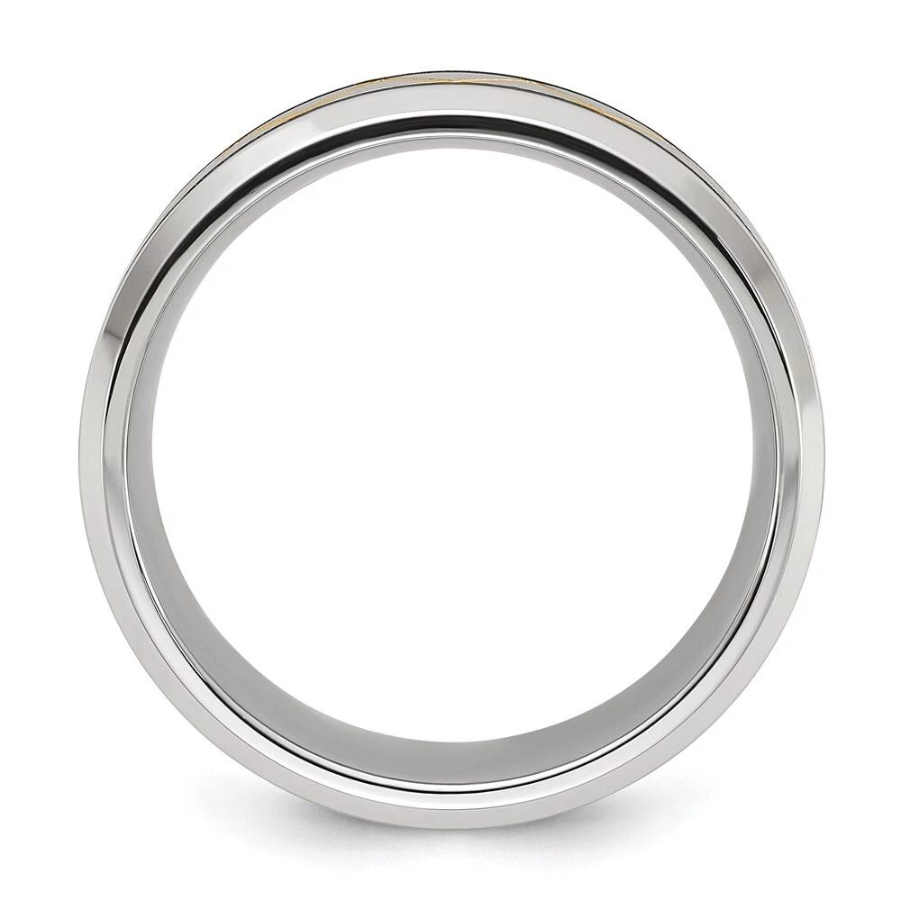 Titanium Brushed and Polished Yellow IP-plated 8mm Band Ring Size 10
