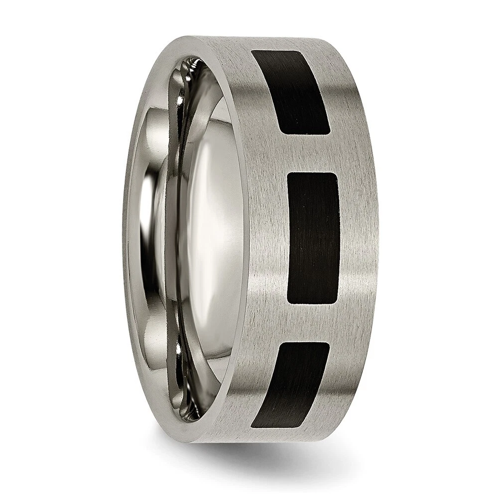 Finish:Brushed|Material: Accent Color 1:Black|Band Width:8 mm|Material: Primary:Titanium|Ring Fit:Standard|Sizeable:No|Thickness:< 2 mm|Item Weight U/M:gm|Width of Item:8 mm|Material: Other:Rubber|Engravable:Yes|Packaging:Gift Pouch|Product Type:Jewelry|Jewelry Type:Rings|Sold By Unit:Each|Gender:Unisex|Material: Primary - Color:Grey|Ring Type:Wedding Bands|Edge Type:Flat|Ring Shape:Flat All weights and measurements are approximate and may vary slightly from the listed information. Welcome to diamond_6720 Payments We accept all Ebay approved payment. Please sent the payment to us within 8 days after the auction has ended, or you will have unpaid case auto open by eBay. Shipping Policy We will ship all items within 1 business days of purchase during the work week (M-F) excluding holidays. If you order on Friday, your order will be shipped the following business day. Tracking will be provided when it becomes available. We will only ship to a PayPal Verified Address. Please make sure your address is current and correct. If the information does not match, your order may be canceled. Buyers are responsible for all customs, duties and taxes for your respective countries. Delivery times for International Shipping will vary. California Buyers Pay 9.0% Tax on all orders. case auto open by eBay. Return Policy & Exchange Returns or Exchange are accepted. Buyer must contact us within 30 days after the item is received. Item must be returned in unworn and resalable condition. We will only issue a refund for the purchase price, excluding any shipping fees. If we are at fault, we will provide a full refund. Buyer is responsible for all return shipping costs. BUYERS FEEDBACK If you have any concerns regarding your purchase, please contact us via eBay Message, we assure you that a satisfactory resolution will be reached. Your feedback is very important to us Do remember to give us 5 star rating(*****) if you are satisfied with our product & service .