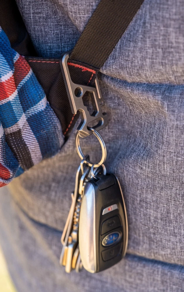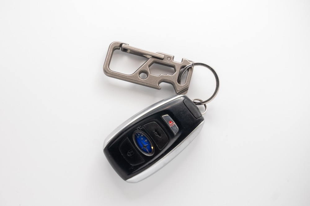 The Titanium Keychain Carabiner EDC is a versatile multi-tool designed for outdoor enthusiasts. Made of durable titanium, this keychain includes four tools: a wrench, bottle opener, Phillips screwdriver, and small screwdriver. The convenient carabiner design allows for easy carrying and access, making it a practical and reliable tool for camping, hiking, and other outdoor activities. With the trusted EDC brand behind it, this keychain carabiner is a must-have for those who value functionality and durability in their tools.