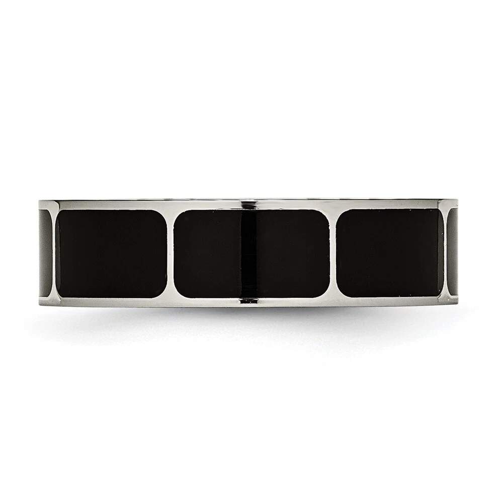Finish:Polished|Material: Accents:Enamel|Material: Accent Color 1:Black|Band Width:6 mm|Material: Primary:Titanium|Ring Fit:Standard|Sizeable:No|Thickness:< 2 mm|Item Weight U/M:gm|Width of Item:6 mm|Engravable:Yes|Packaging:Gift Pouch|Product Type:Jewelry|Jewelry Type:Rings|Sold By Unit:Each|Gender:Unisex|Material: Primary - Color:Grey|Ring Type:Wedding Bands|Edge Type:Flat|Ring Shape:Flat All weights and measurements are approximate and may vary slightly from the listed information. Welcome to diamond_6720 Payments We accept all Ebay approved payment. Please sent the payment to us within 8 days after the auction has ended, or you will have unpaid case auto open by eBay. Shipping Policy We will ship all items within 1 business days of purchase during the work week (M-F) excluding holidays. If you order on Friday, your order will be shipped the following business day. Tracking will be provided when it becomes available. We will only ship to a PayPal Verified Address. Please make sure your address is current and correct. If the information does not match, your order may be canceled. Buyers are responsible for all customs, duties and taxes for your respective countries. Delivery times for International Shipping will vary. California Buyers Pay 9.0% Tax on all orders. case auto open by eBay. Return Policy & Exchange Returns or Exchange are accepted. Buyer must contact us within 30 days after the item is received. Item must be returned in unworn and resalable condition. We will only issue a refund for the purchase price, excluding any shipping fees. If we are at fault, we will provide a full refund. Buyer is responsible for all return shipping costs. BUYERS FEEDBACK If you have any concerns regarding your purchase, please contact us via eBay Message, we assure you that a satisfactory resolution will be reached. Your feedback is very important to us Do remember to give us 5 star rating(*****) if you are satisfied with our product & service .