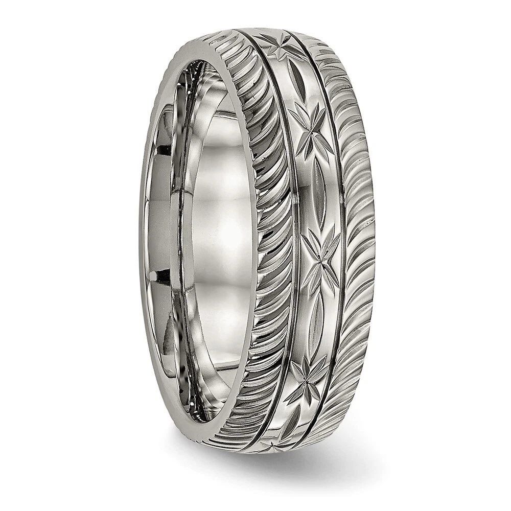 Finish:Polished|Band Width:7 mm|Material: Primary:Titanium|Ring Fit:Comfort|Sizeable:No|Thickness:< 2.5 mm|Item Weight U/M:gm|Width of Item:7 mm|Engravable:Yes|Packaging:Gift Pouch|Product Type:Jewelry|Jewelry Type:Rings|Sold By Unit:Each|Gender:Unisex|Texture:Diamond-cut|Material: Primary - Color:Grey|Ring Type:Wedding Bands|Edge Type:Flat|Ring Shape:Half Round All weights and measurements are approximate and may vary slightly from the listed information. Welcome to diamond_6720 Payments We accept all Ebay approved payment. Please sent the payment to us within 8 days after the auction has ended, or you will have unpaid case auto open by eBay. Shipping Policy We will ship all items within 1 business days of purchase during the work week (M-F) excluding holidays. If you order on Friday, your order will be shipped the following business day. Tracking will be provided when it becomes available. We will only ship to a PayPal Verified Address. Please make sure your address is current and correct. If the information does not match, your order may be canceled. Buyers are responsible for all customs, duties and taxes for your respective countries. Delivery times for International Shipping will vary. California Buyers Pay 9.0% Tax on all orders. case auto open by eBay. Return Policy & Exchange Returns or Exchange are accepted. Buyer must contact us within 30 days after the item is received. Item must be returned in unworn and resalable condition. We will only issue a refund for the purchase price, excluding any shipping fees. If we are at fault, we will provide a full refund. Buyer is responsible for all return shipping costs. BUYERS FEEDBACK If you have any concerns regarding your purchase, please contact us via eBay Message, we assure you that a satisfactory resolution will be reached. Your feedback is very important to us Do remember to give us 5 star rating(*****) if you are satisfied with our product & service .