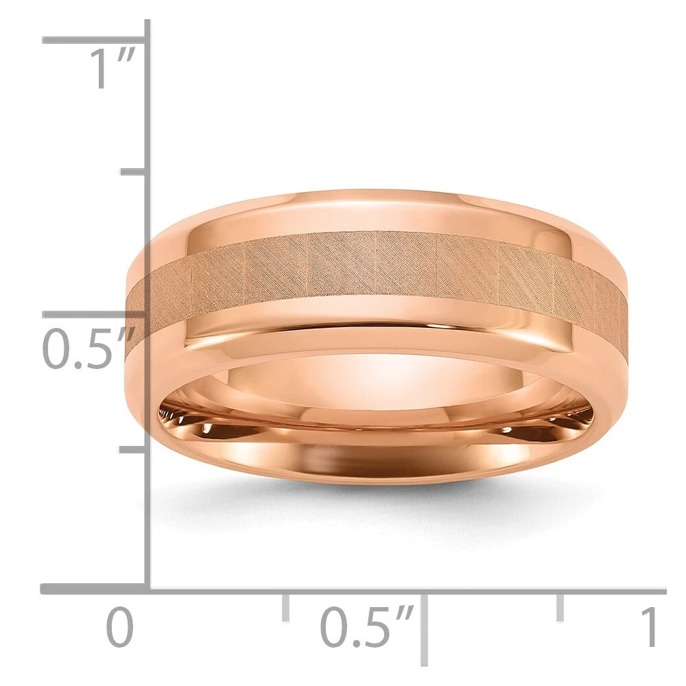 Titanium Polished Rose IP-plated Brushed Center 8mm Band Ring Size 12