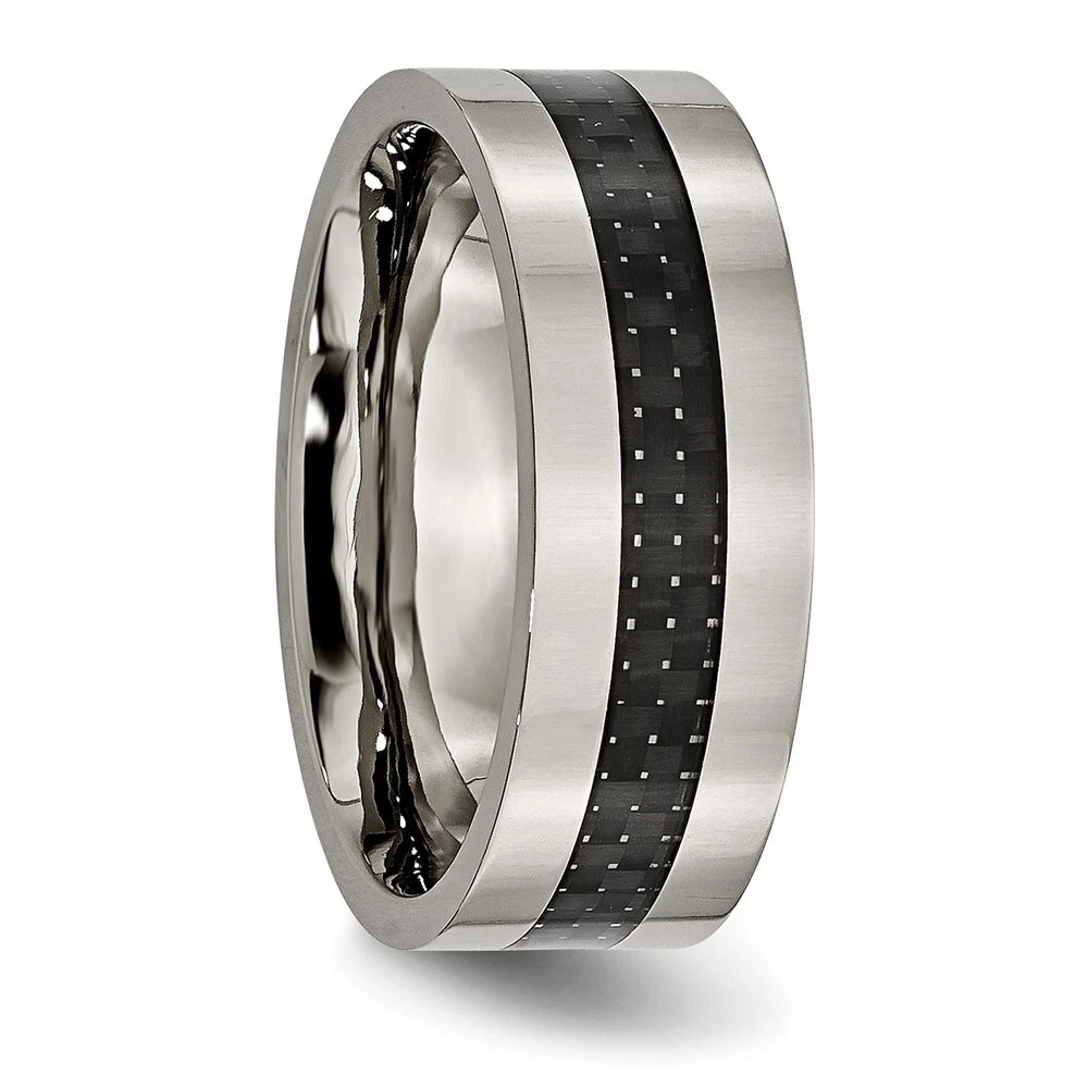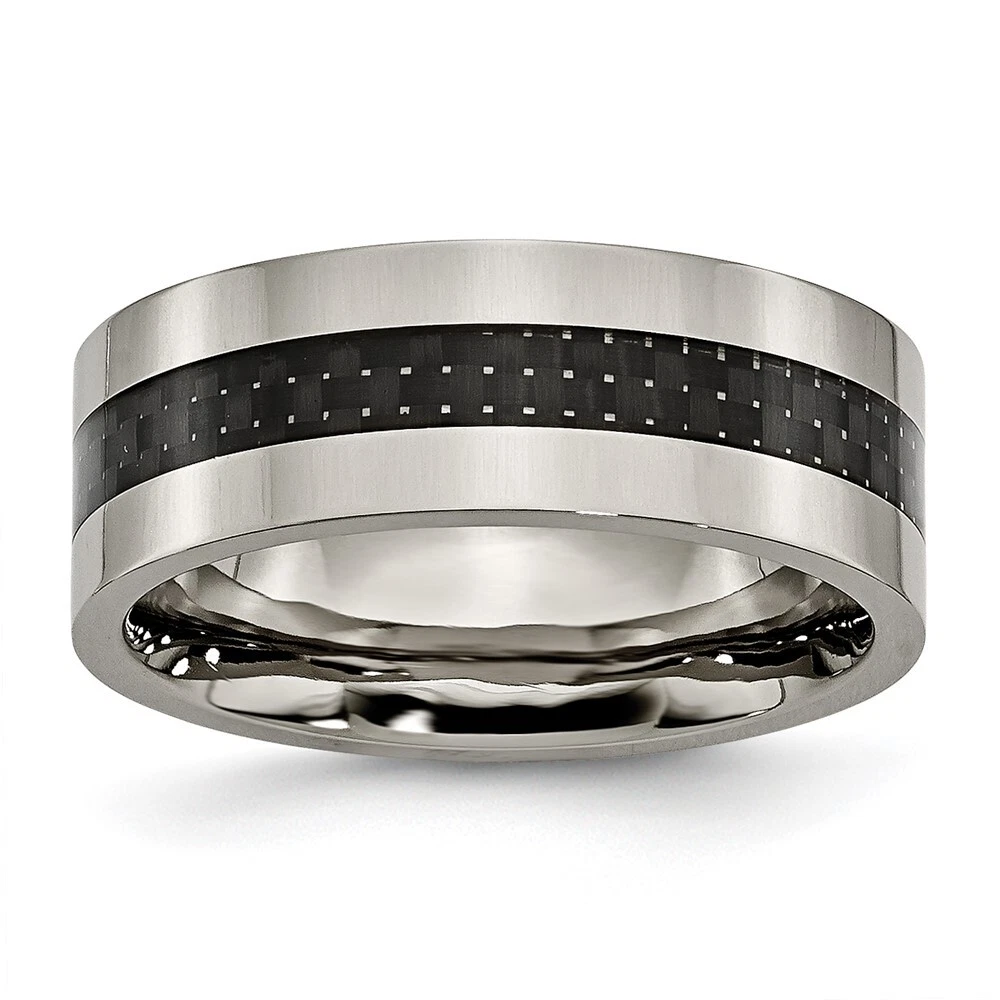 Titanium Polished with Black Carbon Fiber Inlay Flat 8mm Band Ring Size 7