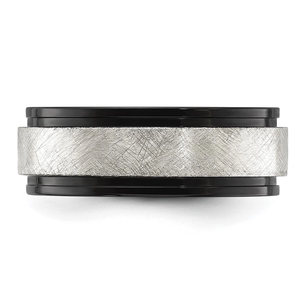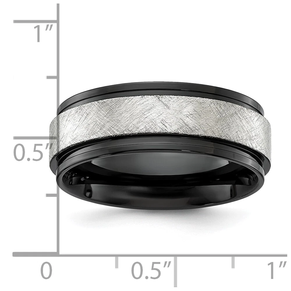 Titanium Polished with Brushed Center Black IP-plated 8mm Band Ring Size 8