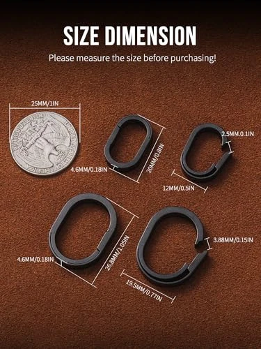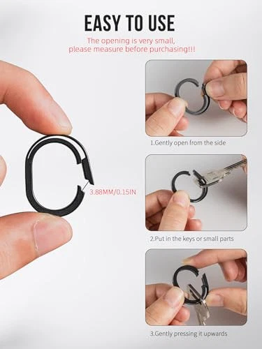 Return Policy Fast Delivery Trusted seller Titanium Small Key Chain Rings, Quick Release Connecting Keychain Mini Carabiner for Keys Wristlet Bag Product Description TC4 Titanium Alloy: Small, light weight, work well, and look cool. Opening:0.15 in, (Note: It can be difficult to get larger keys in due to the small opening) Unique Design: When you open oval keyring they kind of and stay open and easily snap close. They won't come open accidentally either, and way easier to attach then opening a key ring. They're definitely strong and will last Easy to Use: T is a break in the connector when you pull up to open it. It locks in the open position! easy off and easy on .Then when you are ready to close it you just put between your thumb and forefinger and pinch it closed from the ends and it snaps and locks in the close position. (refer to the video) Multi-functional Accessory: ①Key ring:So much easier to add or remove keys. ②Small keychain accessory: Can be used as a link between the key ring and the keyholder ③Small chain connector:Use it to clip your phone to a wristlet. can use it with a paracord lanyard. ④ Mini key clip: clip the keys to your work bag ⑤ Act as a jump ring on a necklace Packaging: 4 pcs titanium easy open key rings, 2 pcs 1 in stainless steel flat keyrings Shipping Returns Payment Shipping Shipping is FREE to all addresses other than APO/PO boxes in the lower 48 states. All our stock ships from US-based warehouses. Shipped via USPS or UPS (depending on location and package weight) Unless stated otherwise, all orders will ship within 24-72 hours of your payment being processed. Check our feedback to see the great reviews of FAST shipping we offer. Returns Seller does not accept returns Payment We currently accept payment via eBay managed payments only. Once payment is cleared, we will dispatch your shipment within 1-3 business days. Please refer to the "Shipping" tab for more information regarding shipping speed to your destination.