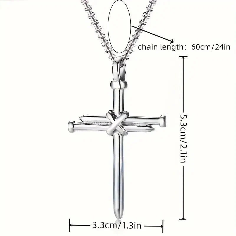 Title Titanium Steel Casting Steel Nails Cross Men's Pendant Punk Style PRODUCT DESCRIPTION Make a bold statement with our Titanium Steel Casting Steel Nails Cross Men's Pendant Punk Style. Crafted from high-quality durable titanium steel, this striking pendant seamlessly blends edgy punk aesthetics with superior craftsmanship, ensuring long-lasting wear and resilience. Designed for men who want to stand out, this cross-shaped pendant features a unique, rugged nail motif that embodies rebellious style and individuality. Its men’s pendant necklace design makes it a versatile accessory that complements both casual and alternative fashion looks. Premium Material: Made from robust titanium steel and finished with zinc alloy accents for a polished, durable finish. Bold Style: The edgy punk-inspired design enhances your personal style with a rebellious touch. Versatile Accessory: Perfect for everyday wear, concerts, or special occasions to elevate your outfit. Easy to Wear: Non-magnetic, lightweight, and comfortable, ideal for all-day wear. Upgrade your jewelry collection with this edgy, high-quality pendant that combines durability with a distinctive punk style. Whether you're adding to your personal collection or searching for a unique gift, this Titanium Steel Casting Steel Nails Cross Men's Pendant is an essential accessory for the modern rebel. Order now and showcase your fearless style today! Powered by