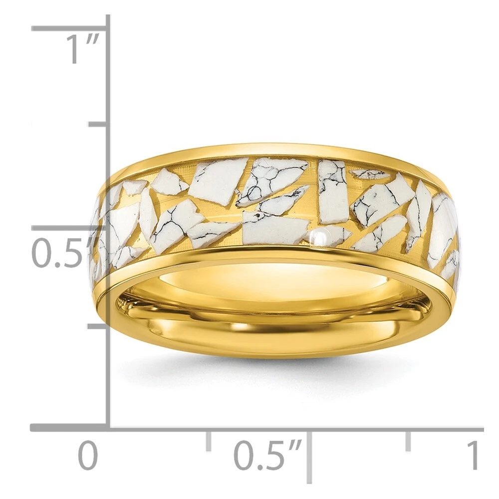 Titanium Yellow IP-plated with Ceramic Fragments Inlay 8mm Band Ring Size 9