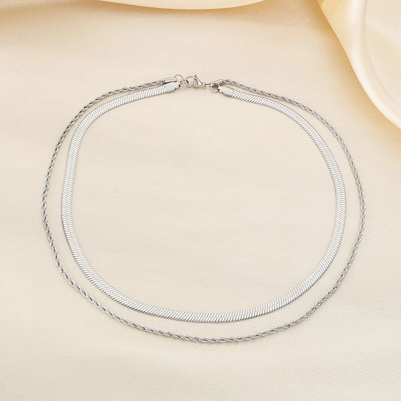 Titanium steel blade chain Serpentine collarbone chain double layered necklace
