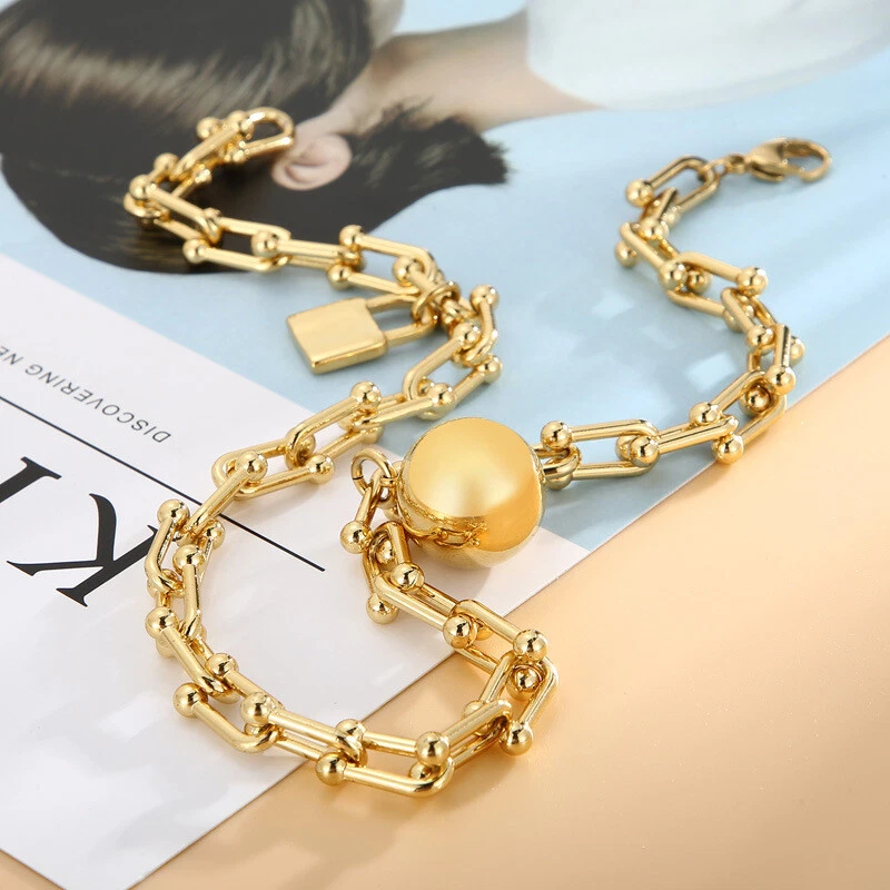 CHRISTMAS CHARM BRACELET Dangle Enamel Gold-Tone 6.75" Bell Snowman #JJ