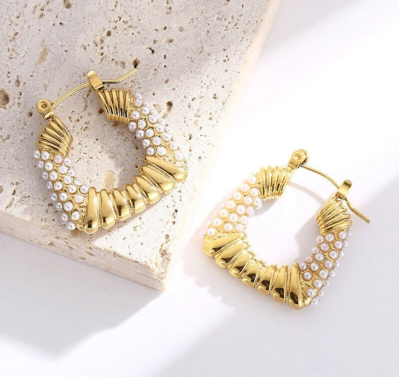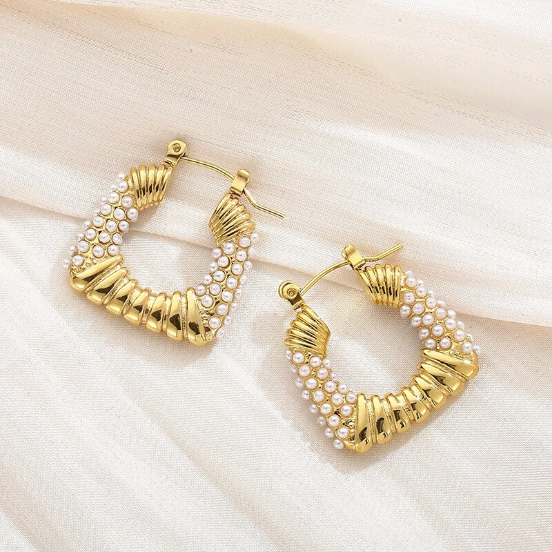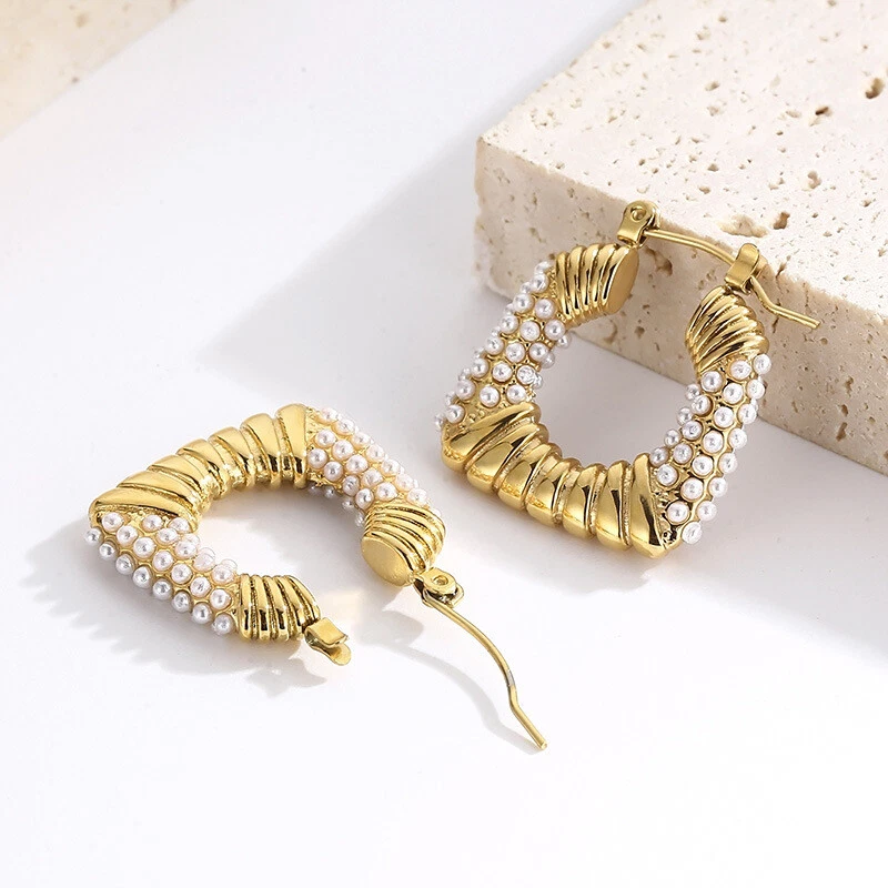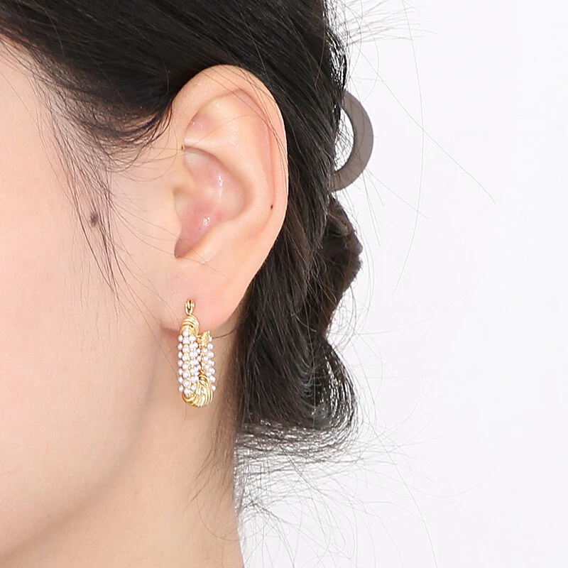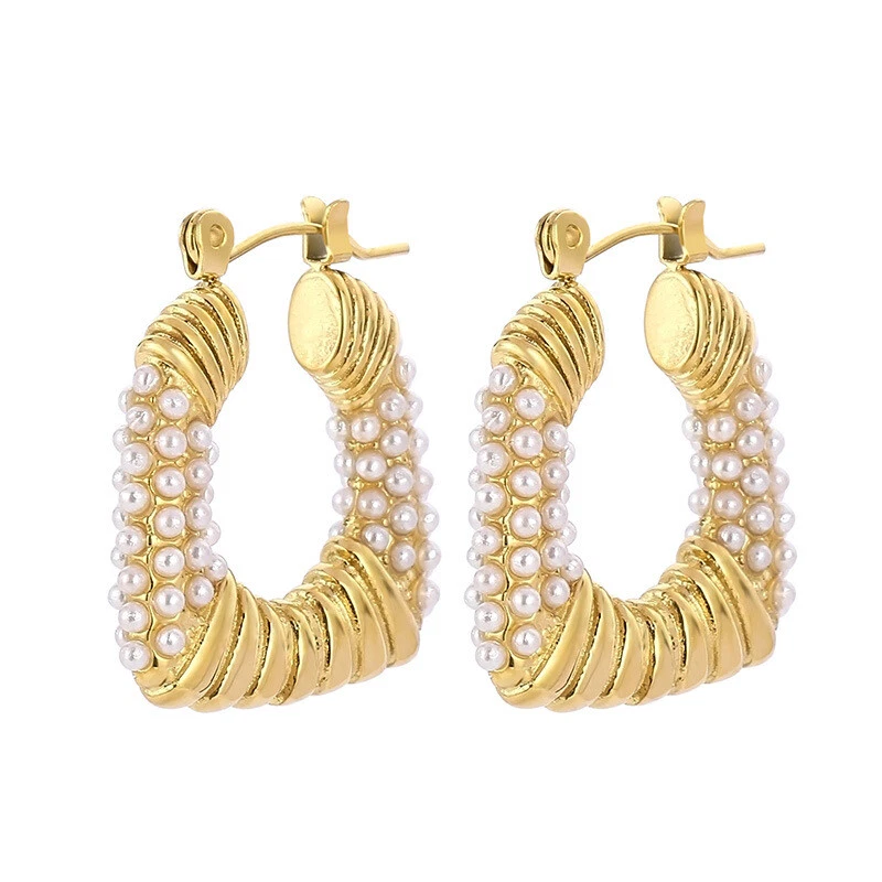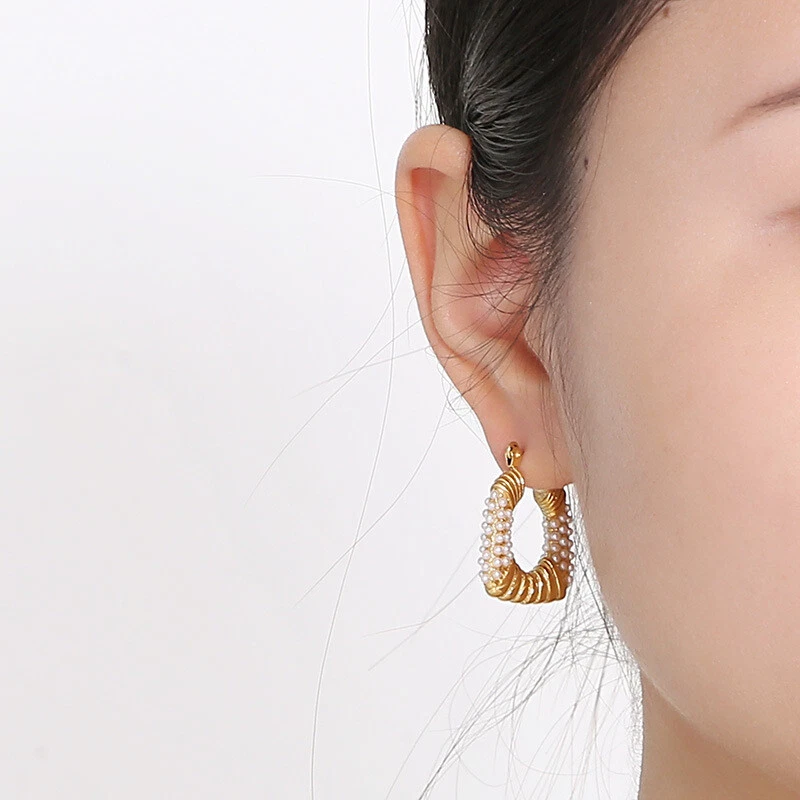 Titanium steel earrings French retro style square pearl earrings for women