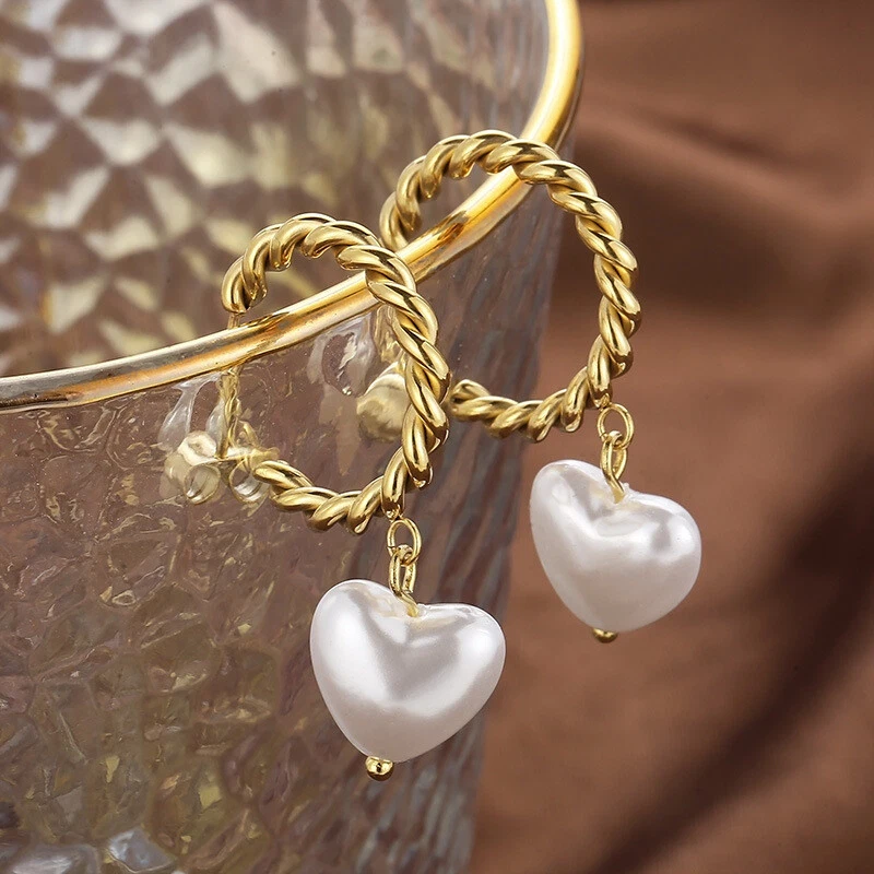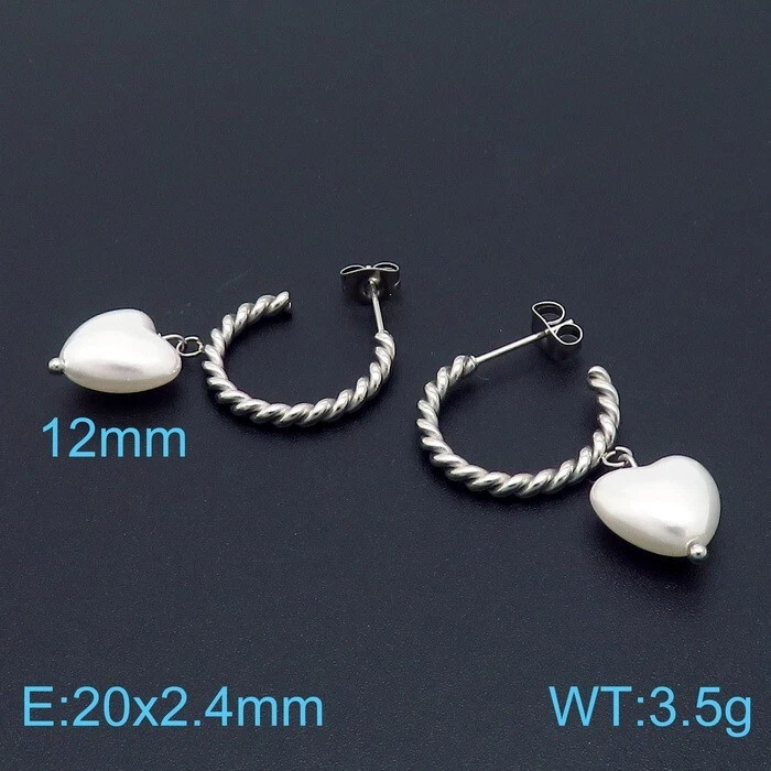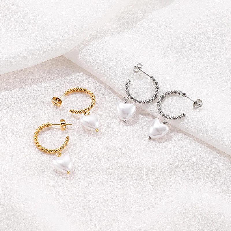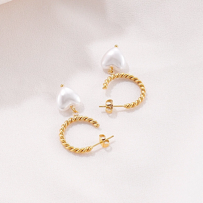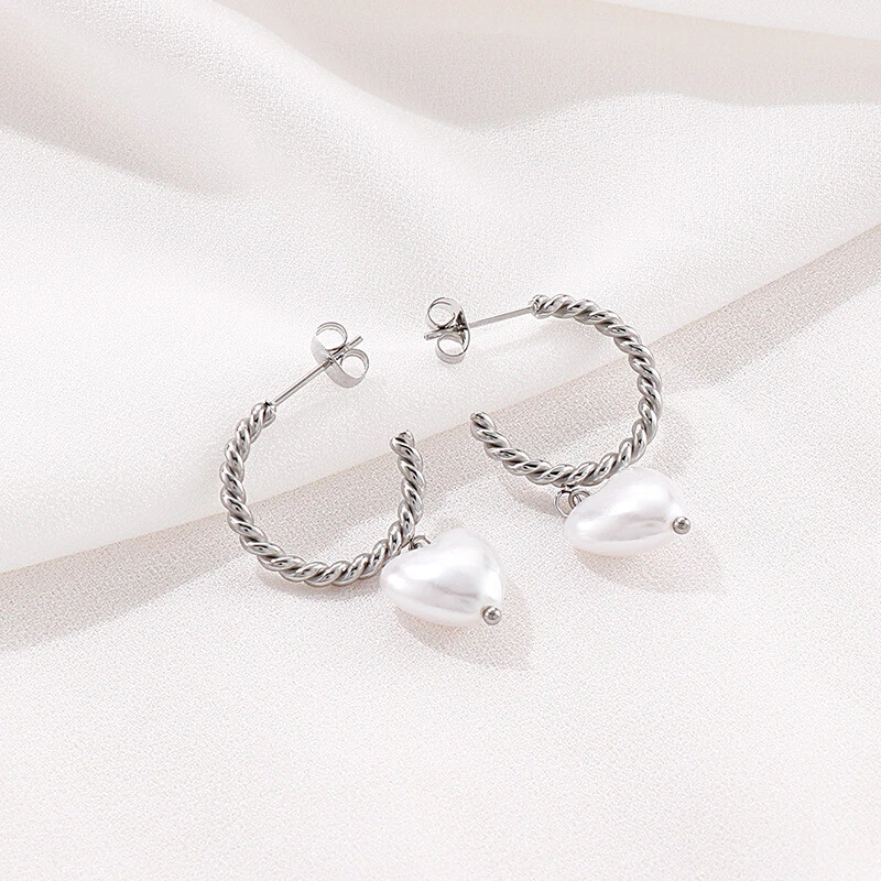Titanium steel twist C ring earrings heart-shaped pearl earrings for women