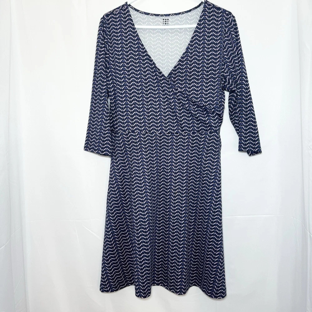 Dress is in excellent condition. There are no notable flaws or signs of wear. Color is purple Pallay Size large - Measurments are approximate and were taken lying flat. Bust 19” Sleeves 17” Waist 16.5” Length 37” Feels like a dream, stays in command of the stage come harsh realities (like laundry done by ten year olds). Made of washable, wicking Buttah™, our soft peached poly/spandex blend. And, it's built with SwiftSnap™: our secret front and center hem snap that delivers instant covert coverage if we up jump the boogie. Wrap-style bust. 3/4 length sleeves. 90% microfiber poly/10% spandex) SwiftSnap™ at hem Two zippered pockets