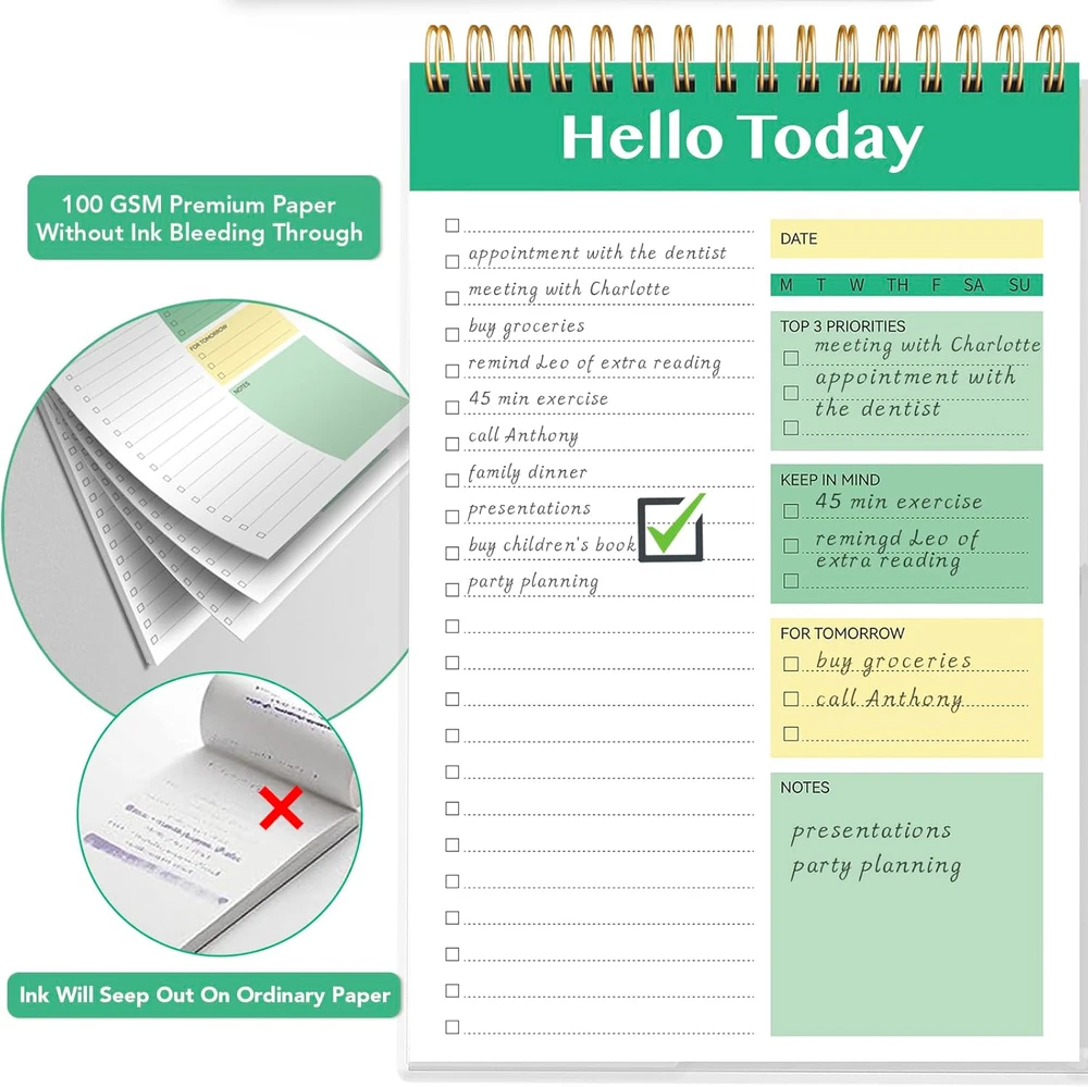 Fast Shipping Great Customer Support Satisfaction Guaranteed DESCRIPTION Shipping Shipping Shipping All domestic packages are shipped for Free (Unless other shipping method was selected during the checkout) Most items ship and arrive much sooner than the estimate delivery date. Usually within 2-3 days from payment. However, we have longer estimates to compensate for the occasional delay or supply chain breakdown. We do not accept P.O. BOXES - PLEASE PROVIDE A PHYSICAL ADDRESS Return Return Return In the event that you would like to return your purchase, we allow returns that are processed within the defined return date (the return date is to be found in the return policy/shipping and handling section) Please contact us for a return authorization and the return shipping address. Payment Payment Payment PayPal is our preferred method of payments it's the quickest, easiest and most secure way to pay for your goods or services online. PayPal offers buyer and seller protection should there be a problem. If you do not have a PayPal account, to get started and buy your first item with us is very easy. Simply click on the 'Buy It Now' button and follow the eBay checkout steps. Select PayPal as the payment method you then will be given the chance to enter your card details in to PayPal's secure checkout in order to pay for your order. Once the payment has been made, you will then be given the opportunity to make your own PayPal account to make paying for your items in the future very easy. Should there be a problem with payment please do let us know. Feedback Feedback Feedback Customer satisfaction is very important to us. If you have any problem with your order,please contact us and we will do our best to make you satisfied, please do not leave a negative feedback before we resolve your problem. We guarantee that your issue will be solved quickly. As long as you are happy with your purchase of , please leave us a positive feedback. Your feedback is very important to us it affects our search placement on eBay. We will leave a positive feedback for you in return automatically once we receive your feedback. Contact Us Contact Us Contact Us If you have any queries, please contact us via ebay. We usually respond within 24 hours on weekdays. Thank you for visiting our ebay store! Stay Organized and Improve Your Productivity: With Keyfy’s To-Do List Notepad, all of your everyday tasks will be gathered in one place and will be easy for you to access and manage. No more annoying sticky notes to bother you, and your to-dos will not be missed. Multiple Sections Design for Better Tasks Management: Our design features with different functional sections and offers ample space for you to write down all your thoughts. The sections of CHECKLIST, TOP PRIORITIES, KEEP IN MIND, FOR TOMORROW, and NOTES offer you a clear overview of the urgency levels of tasks, and you can easily conquer your tasks in order. Suitable for Various scenarios: This multi-functional designed To-Do List Notebook fulfills needs for school, work and daily life. For personal or professional use, you can use it in your office, school, university and home, suitable for teacher, student and meeting. This is an essential office organization notebook for planning projects, managing tasks and scheduling your day. Delicate Practical Design for Pleasant Experience: The delicate and thoughtful design of our daily to-do list planner brings you the transparent PP cover which will protect your inner pages from water and stains Pages made with premium paper provide you with smooth writing experience without smudging and bleeding through. Sturdy cardboard back for capturing your inspiration any time and any where without location restrictions. Size of 6.5 x 9.8 inches is suitable for carrying with you. Undated feature: The feature of undated for our work organizer notebook provides you with flexibility. It allows you to start your plans anytime without wasting any pages, and maximize the utilization of this product. To Do List Notepad - 52 Sheets Daily Planner Checklist for Work Productivity Click here to see description Fast Shipping Great Customer Support Satisfaction Guaranteed DESCRIPTION Shipping All domestic packages are shipped for Free (Unless other shipping method was selected during the checkout) We ship within two business days of payment, usually sooner Standard FREE shipping takes between 3-5 business days Expedited shipping takes between 2-3 business days Overnight shipping takes between 1-2 business days We do not accept P.O. BOXES - PLEASE PROVIDE A PHYSICAL ADDRESS We Ship Globally using ebay's GSP, the item is sent to a logistic center in KY and shipped from there to the rest of the world. International customers are responsible for all duties and taxes Contact your local authority for questions related to the amount of duties or taxes you will be responsible for Return In the event that you would like to return your purchase, we allow returns that are processed within the defined return date (the return date is to be found in the return policy/shipping and handling section) Please contact us for a return authorization and the return shipping address. Please contact us for a Return Merchandise Authorization (RMA) number. We advise you to use a reputable carrier service when returning your goods. Please pack all returns appropriately. We ship globally Via eBay's global shipping program (GSP). Thus we don't cover returns for items shipped globally. Buyers returning such items will be refunded ONLY for the item's cost and not for the shipping. please check the Voltage information and make sure it matches the one in your country. In case it's not stated in the description, do ask us. Payment PayPal is our preferred method of payments it's the quickest, easiest and most secure way to pay for your goods or services online. PayPal offers buyer and seller protection should there be a problem. If you do not have a PayPal account, to get started 