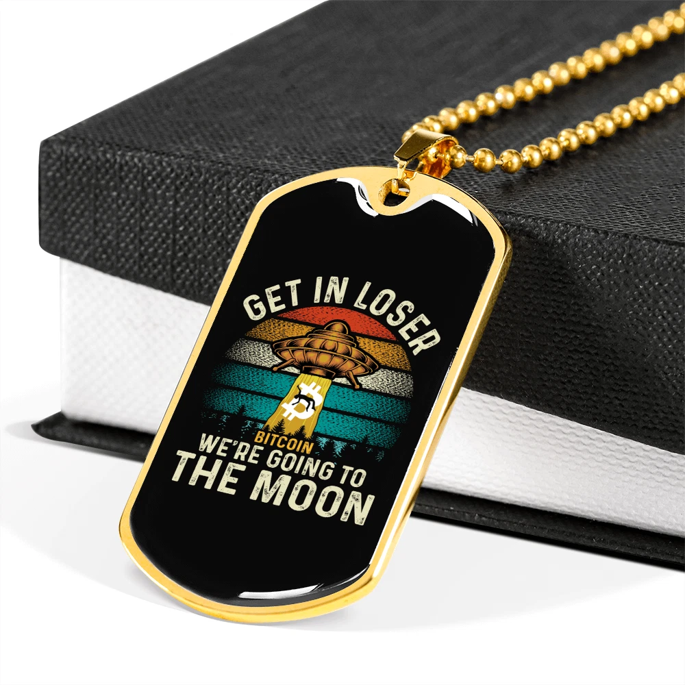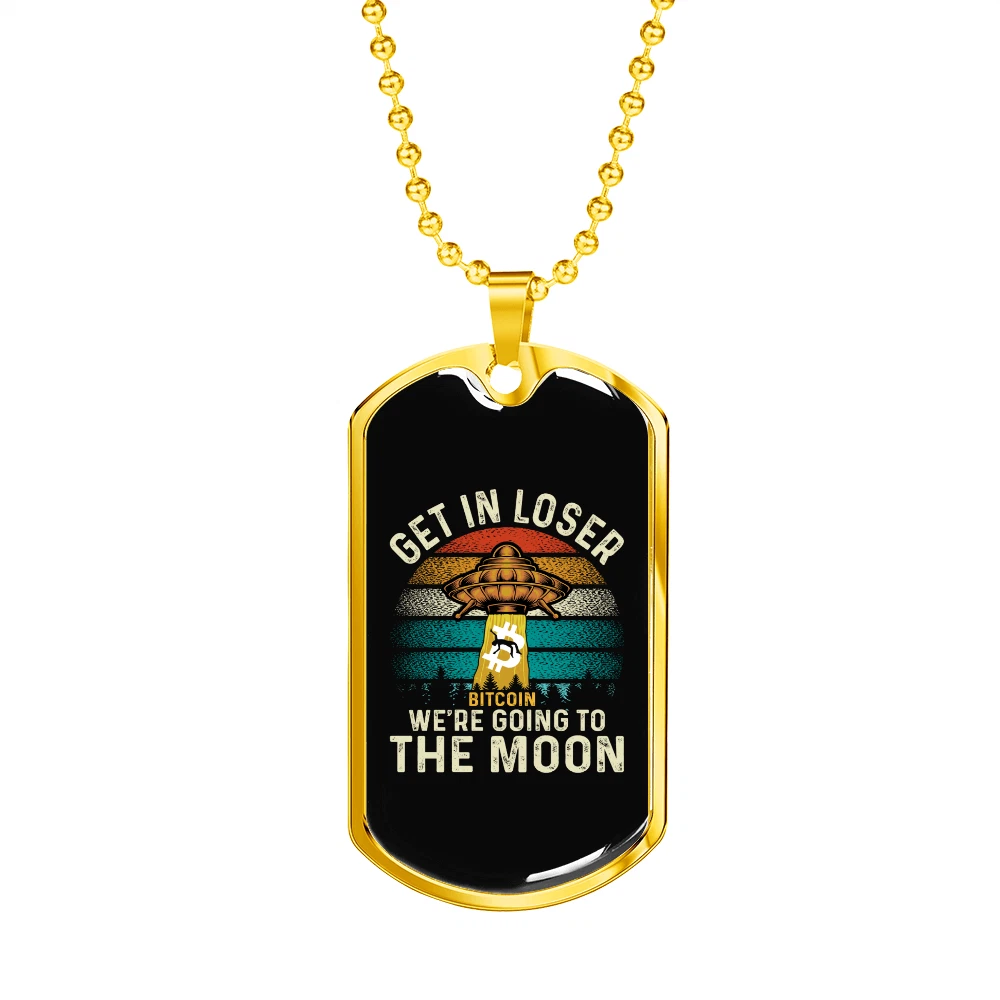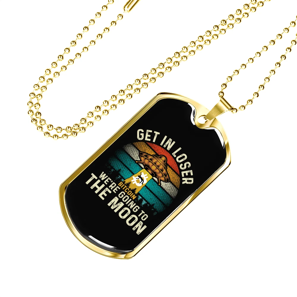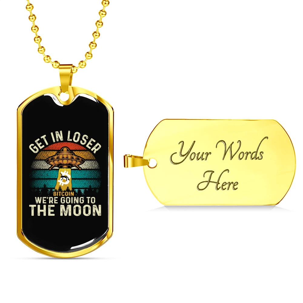 To the Moon Necklace Stainless Steel or 18k Gold Dog Tag 24" Cha