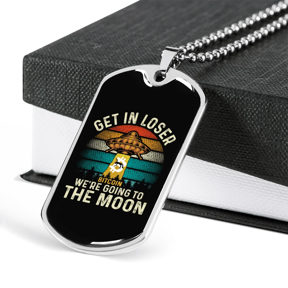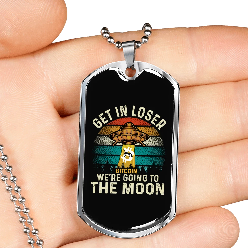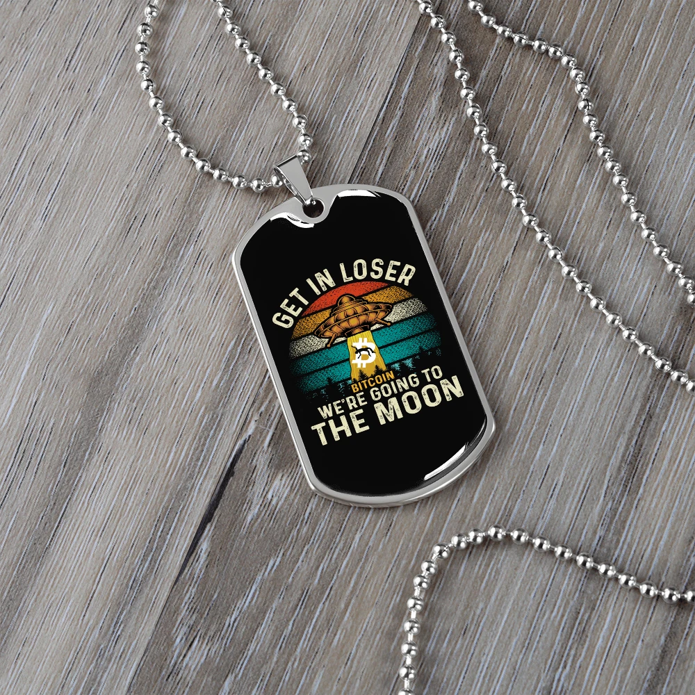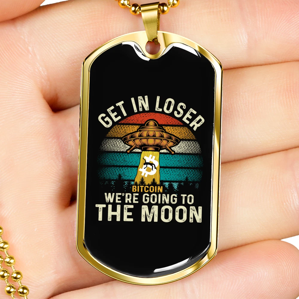 Personalize: Yes Pendant/Locket Type: Dog Tag Customized: Yes Type: Pendant Features: Adjustable Closure: Lobster Clasp Pendant Shape: Dog Tag Theme: Bitcoin, Crypto, Blockchain Color: Multi Color MPN: 6943004819544 Metal: Surgical Steel Main Stone: None Chain Type: Ball Brand: Express Your Love Gifts Material: Glass Necklace Length: 24" Country/Region of Manufacture: United States Base Metal: Stainless Steel