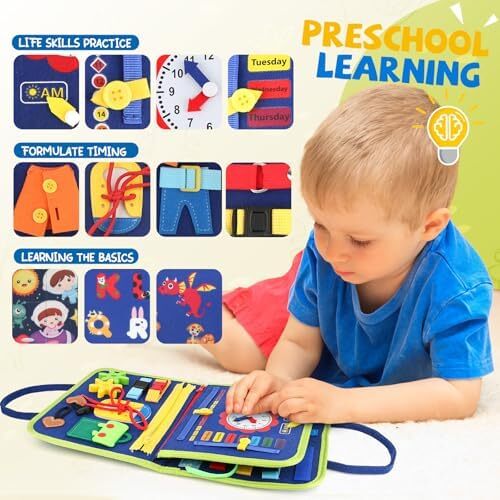 Free eBay listing template designed by dewiso.com Montessori Busy Board Toys, Sensory Board for Toddlers 1-3, Travel Felt Busy Book for Airplane Car, Activity Busy Mat for Learning Fine Motor Skills Suits Boys Girls Birthday Gifts Blue/P1 FREE AND FAST SHIPPING! 【TODDLER MONTESSORI TOY】innovative Montessori busy board for toddlers 1-3 features 25 Montessori toddler activities, including zippers, shoelaces, buttons, belt buckles, jigsaw puzzles, alphabet, clocks and calendar learning games. Safe preschool learning activities for quiet play and develop fine motor skills, dressing skills, finger dexterity, and cognitive skill. 【EASY TO OPERATE】Designed for sensory learning, this baby busy board fosters fine motor skills, cognitive development, and hand-eye coordination in toddlers aged 2-4. It's an ideal autism sensory toy for children with special needs. 【EXCELLENT TRAVEL TOY】Measuring 11.02 x 8.66 inches, this portable busy board is perfect for travel. Equipped with handles and a zip pocket, it keeps little items organized and provides hours of quiet entertainment for toddlers on the go. 【SAFE EDUCATIONAL TOY 】Crafted from soft felt, our toddler busy board ensures safety and durability. With no sharp edges and secure parts, it's a preschool classroom essential. Great toddler activities sensory board to keep them occupied while on car, airplane, travel or settings needing quiet. 【GREAT GIFT FOR TODDLERS】A top-notch educational gift for 3-6 year olds! Our learning activity board for toddlers 1-3 helps teach spelling, counting, matching, and more. Perfect for parent-child bonding and ideal for both boys and girls. Product We offer a 30-Day Return Policy on items which you are not completely satisfied with. You have the option for a full-refund or an exchange of the item. No returns are available on items shipped outside of the US . Shipping We offer Free Shipping to the US and ship within 2 business days of payment, usually sooner. We use UPS express shipping. That's why your products are usually delivered within 3 days . Contact We try our very best to make sure every customer is completely satisfied. If there's a problem , message us! We're happy to help. 24/7 live chat available.
