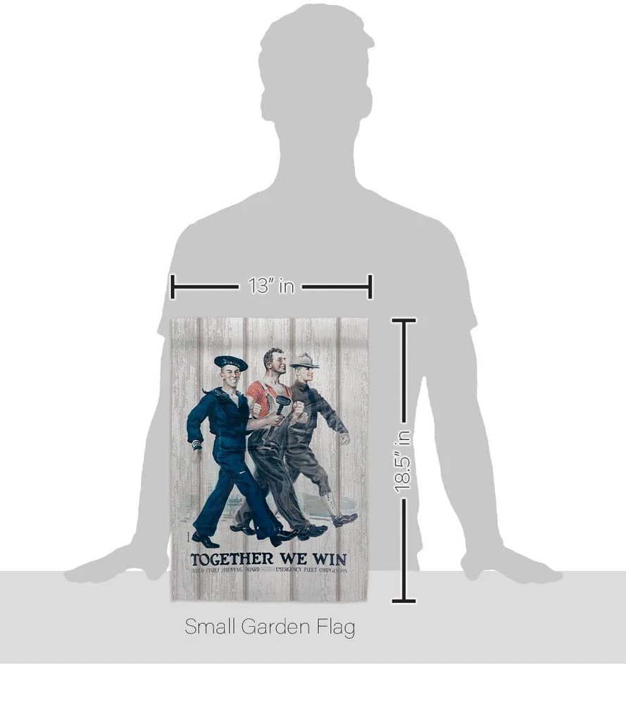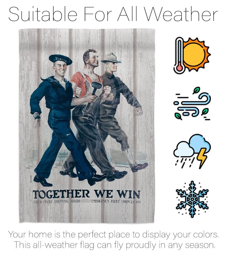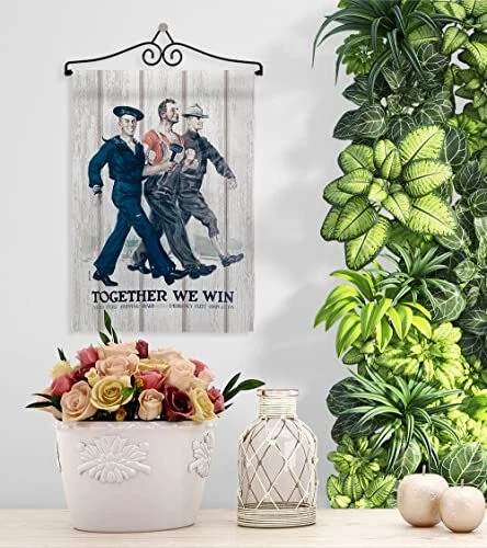 Together We Win Garden Flag Set Wall Hanger Armed Forces Navy USN Seabee Unit...