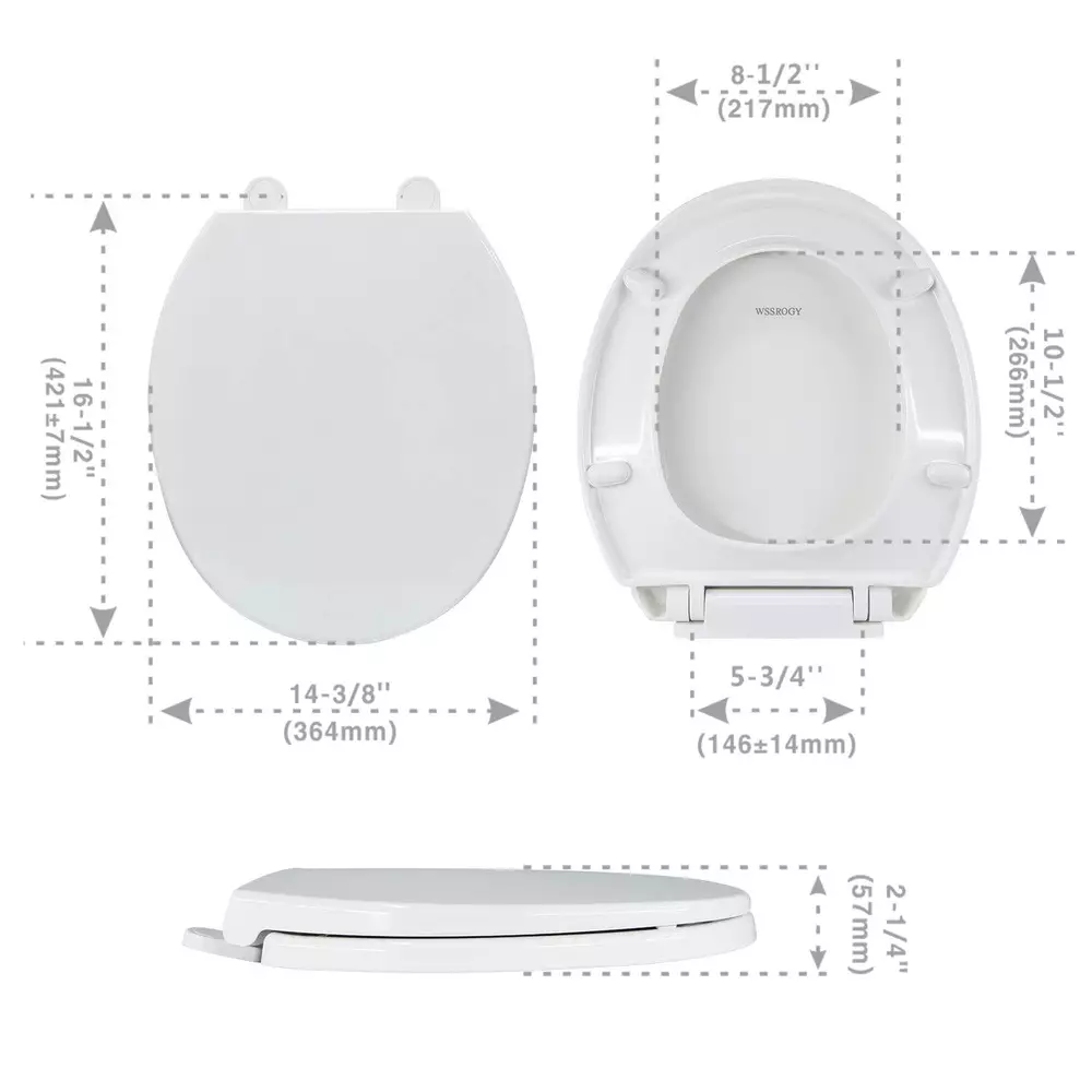 Built-in SoftClose hinge system: Innovative Quiet-Close technology specifically designed touser's convenience. It make sure the toilet seat is protected against bumps and closes quietly every time, which is good ideal for using toilet if you don't want to disturb others late at night. Stylish family bathroom: Blends seamlessly into bathrooms both traditional and contemporary with the toilet seat from . Attractive design coordinates with popular bathroom decor. It makes with 100% Earth-friendly plastic and processes. In a crisp gloss white finish, easy-to-clean for users. Know your measurements: Unless you are replacing your entire loo, in which case you should check out how to choose a toilet buying. Seat with standard round toilet bowls, Seat Dimensions 16.5 x 14.3 in, Fits standard toilets with fixed holes from 5.2 into 6.3 in. 2-installation methods: prepared sets of accessories(plastic screws: bottom mount, metal screws: top mount), top fixing toilet seats feed bolts into the loo pan and are tightened at the top, whereas bottom fixings are fed through the top and tightened underneath. Worry-free shopping experience: If round toilet seat is damaged due to quality problems, you can replace a product within year from the date of purchase.