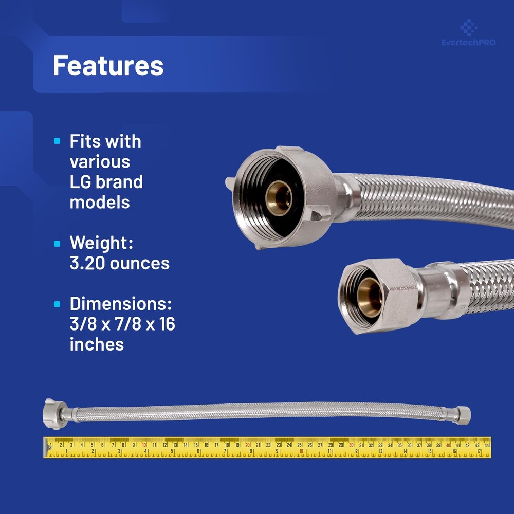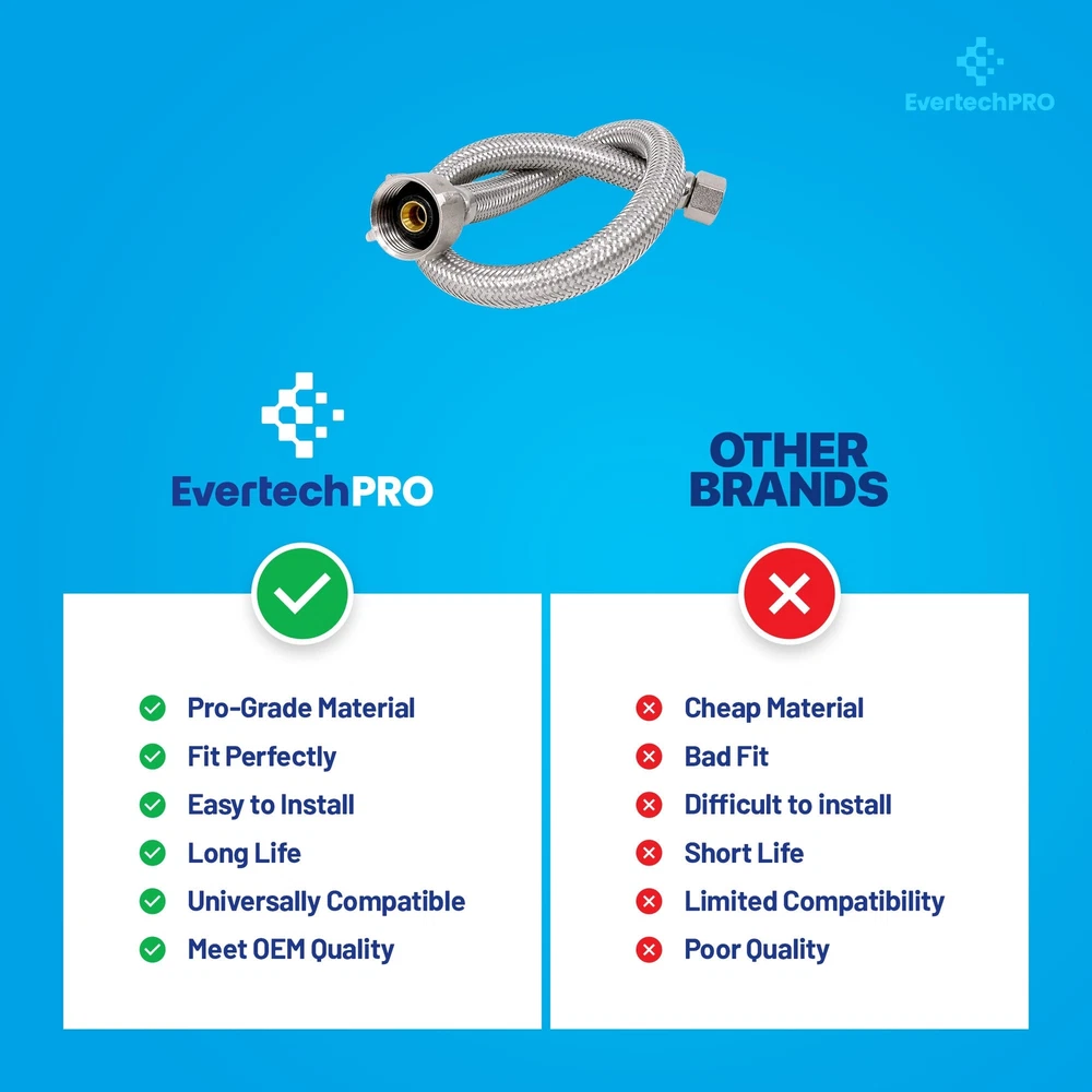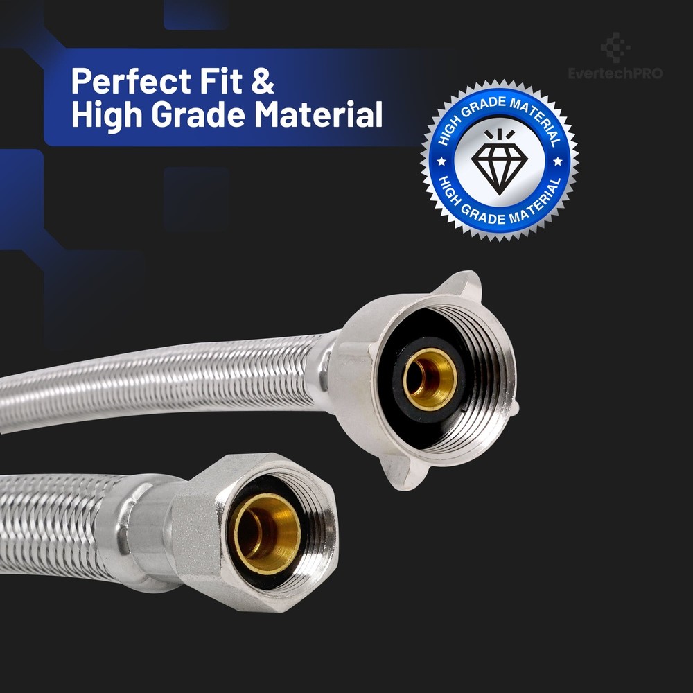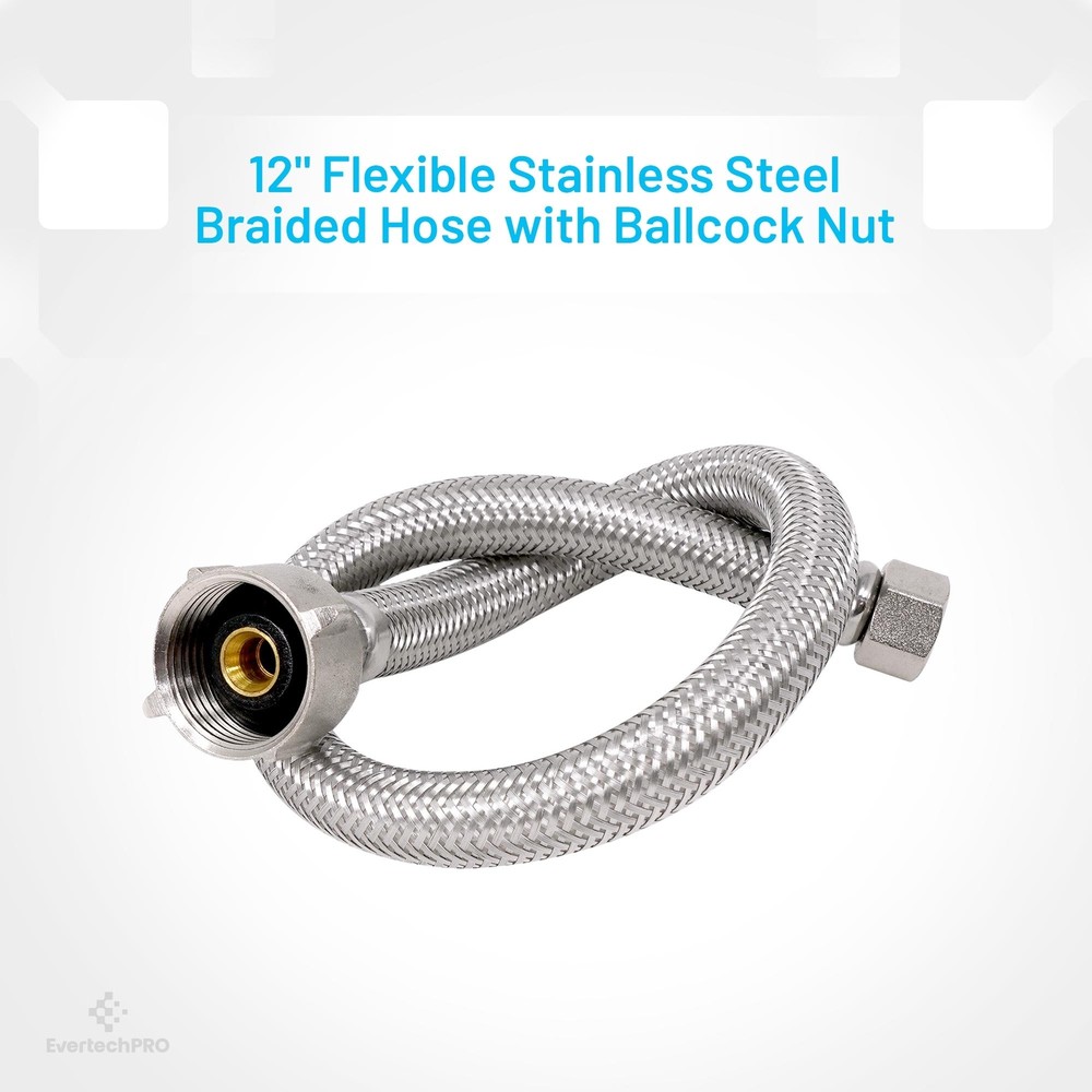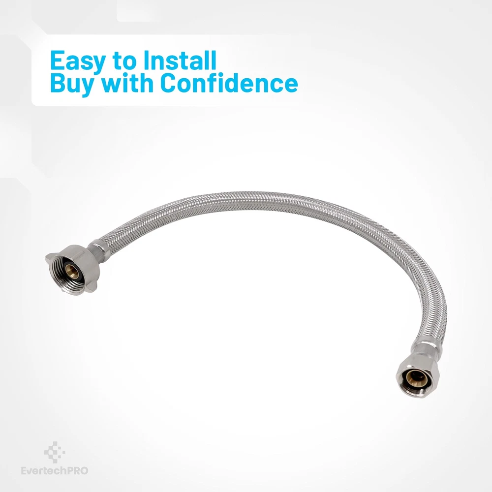 Introducing the EvertechPRO premium water hose for sink, a must-have in your sink plumbing supplies. This high-quality steel braided water line is designed to guarantee superior performance and long-lasting reliability. Constructed with a F 3/8 C x F 7/8 Brass Nut x 16 inches, it offers a perfect fit for most common household installations. Its 16-inch length allows for easy and flexible positioning during installation. Made from stainless steel, this braided hose is robust and durable, ensuring optimal service for years to come. Our EvertechPRO sink water hose is universally compatible, making it an excellent choice for a wide range of applications. Whether you need a toilet water supply line, faucet supply lines, toilet water line, or a faucet supply line extension, this product will serve your needs perfectly. Also, it can function as a faucet connector, toilet connector, sink supply line, sink water hose, 3/8 compression hose, or a flexible toilet supply line. The EvertechPRO water hose for sink stands out for its easy installation that requires no professional skills. You can effortlessly fit it into your faucet pipe, bathroom faucet hose, or 3/8 faucet supply line with minimal tools. The flexibility of toilet supply line 16 inch allows it to adapt to various installation scenarios, making it a versatile addition to your water hose for sink faucet or bathroom sink supply lines needs. The EvertechPRO sink water supply line is designed to prevent water leakage, ensuring that your toilet water supply connector remains dry and safe. With this product, you won't experience any water wastage or damage to your bathroom or kitchen fixtures. In conclusion, this EvertechPRO water hose for sink is an excellent addition to your plumbing supplies. Trust EvertechPRO for reliable and efficient solutions for your sink water lines, bathroom sink water supply lines, faucet connector braided stainless steel supply hose, sink water supply lines, faucet water line, water hose sink, and water supply hose for toilet needs.